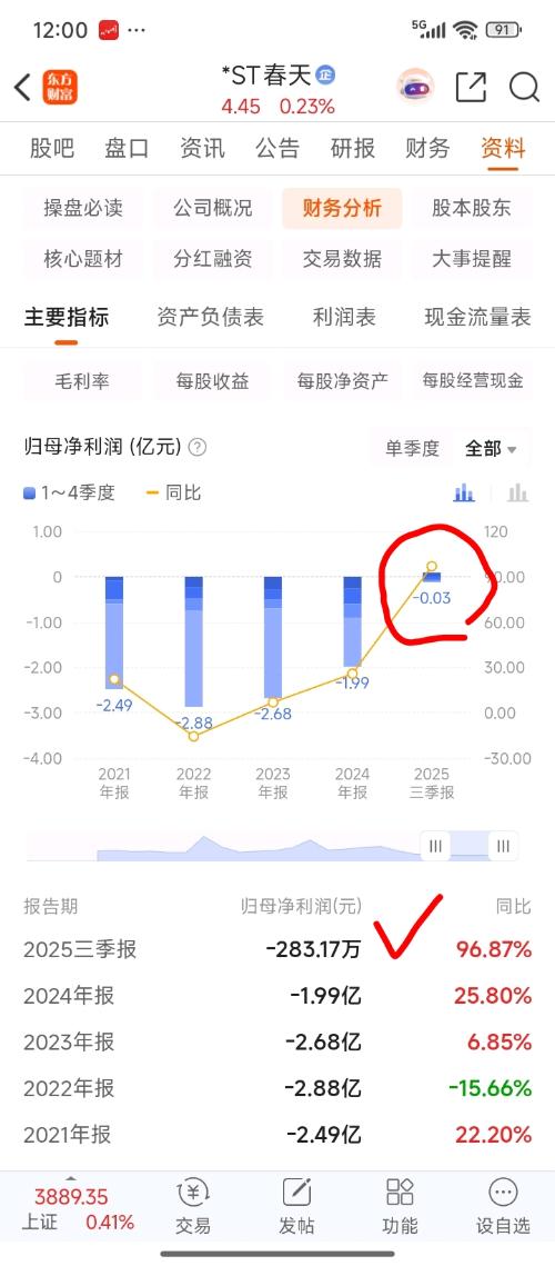*ST春天,4.42买入,后来4.10割肉绝大部分,利下持股成本很高,为什么没有等到拉高出货5.84时候获利出来,也许是要做一些操作失败亏损股票,出来的钱换股凯瑞德在7.45卖出,相当于现在股价春天股价一样,是海昌新材出来捣浆糊的,无所谓。最新公告,公司已经很努力改变现状,现在重点是营业额,应该可以实现,但是提醒满仓的,注意风险。告诉一个真实故事,我当年持股*ST金泰,不是现在的*ST金泰,当时的*ST金泰公告业绩快报没事,股价自然两位数,可是4月份就要公告年报,突然公告年报改造,原来盈利变成亏损,披露年报就停牌等待是否终止上市,晴天霹雳,连续跌停板到停牌,最后我退市整理期开盘集合竞价1才出逃成功。我不是怀疑春天没有实现3亿营业额的努力,但是我有怀疑差一点点达不到3亿的权利,所以小心就是,一切都有可能。