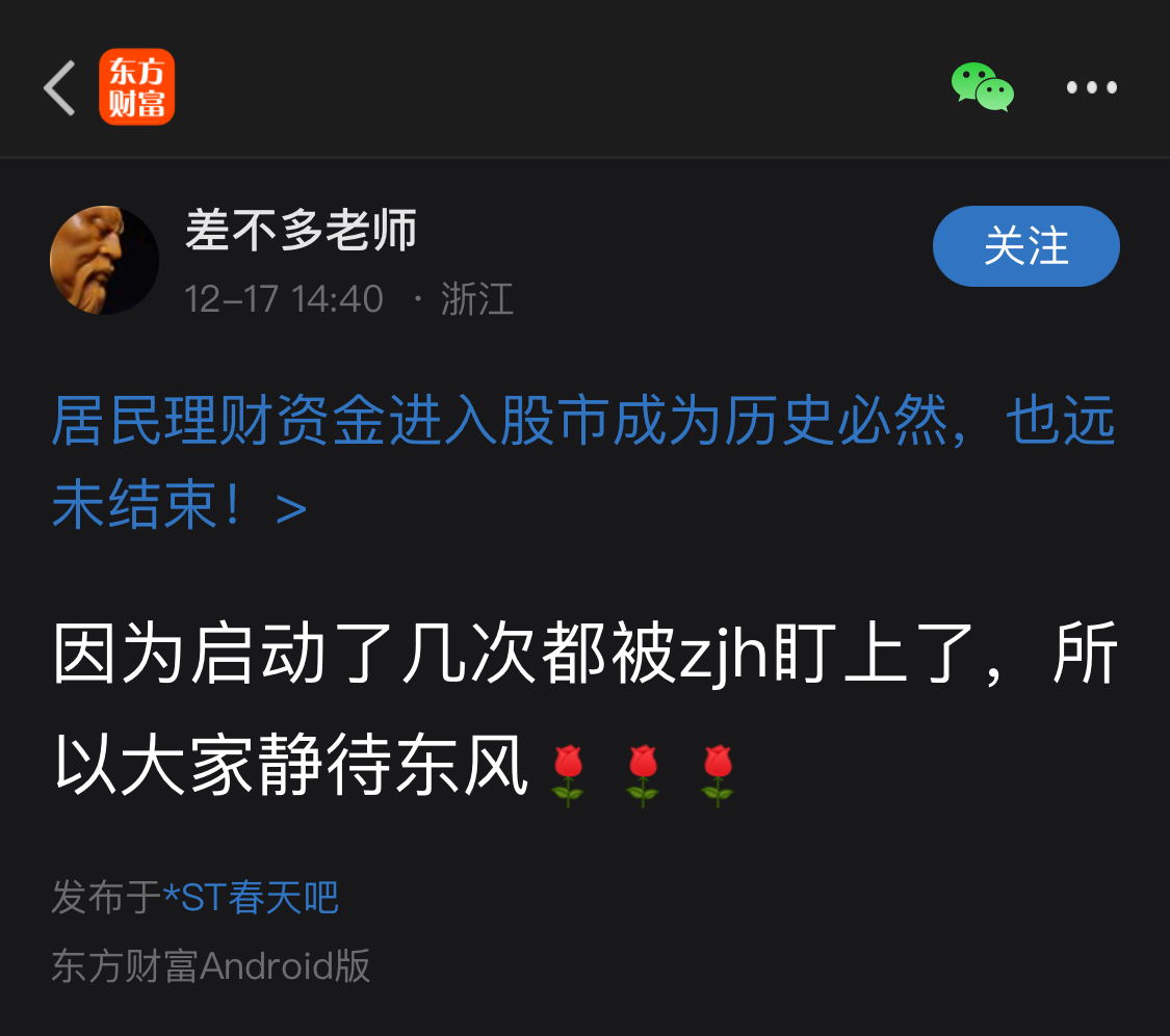$*ST春天(SH600381)$ 明明就是主力知道有监管函多次拉高出货,10月底、12月初非常明显的拉高出货,可有些人嫁祸于ZJH,说是被ZJH盯上的原因,欺骗大众!把拉高出货造谣污蔑是由于ZJH盯上的原因