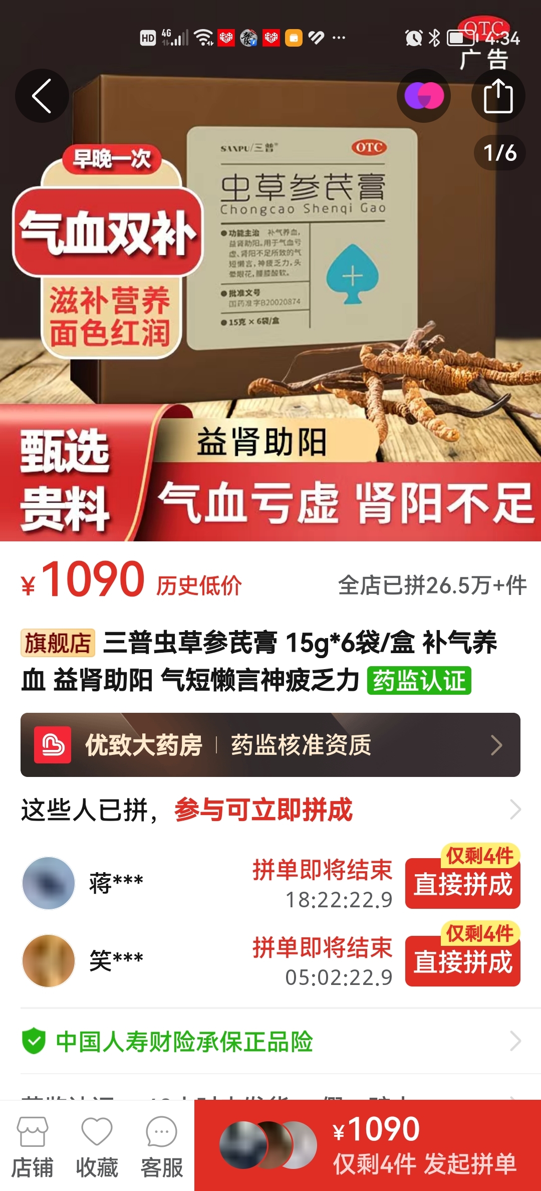 虫草参芪膏拼多多上已拼26.5万件了,不得了1090元那要多少亿的营业收入??