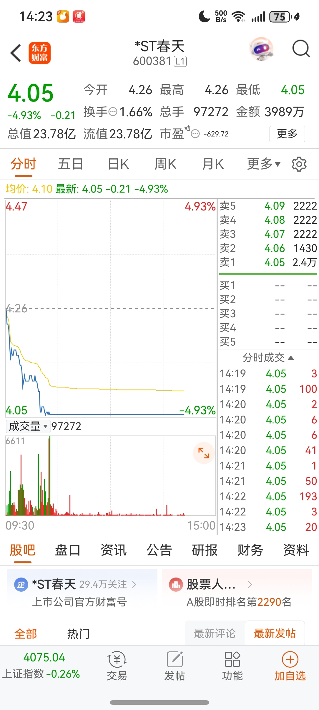 $*ST春天(SH600381)$ 看这挂单好叼哦