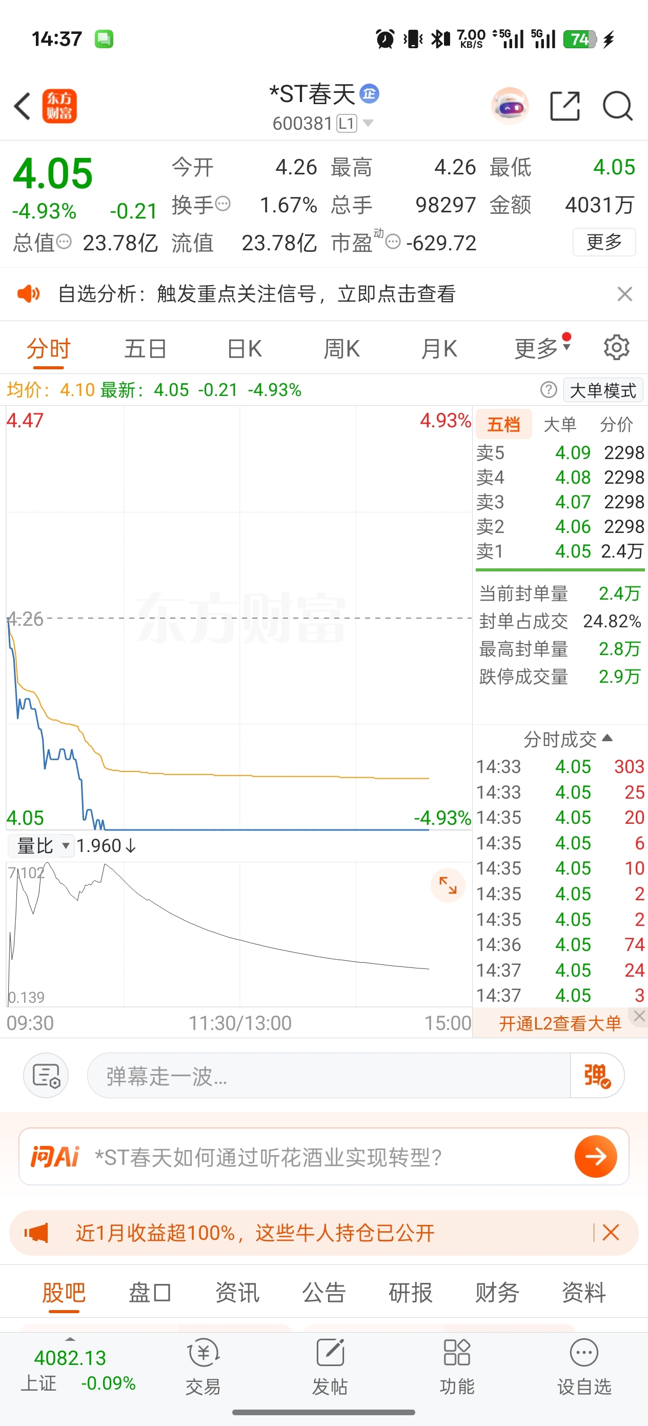 $*ST春天(SH600381)$ 9898