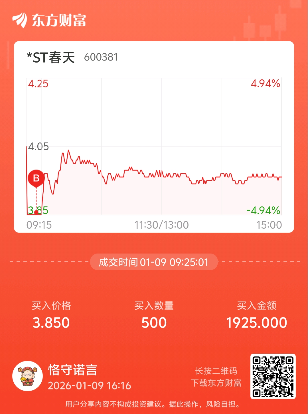 温馨提示: 1.根据《证券法》规定,禁止编造、传播虚假信息或者误导性信息,扰乱证券市场;2.用户在本社区发表的所有资料、言论等仅代表个人观点,与本网站立场无关,不对您构成任何投资建议。用户应基于自己的独立判断,自行决定证券投资并承担相应风险。《东方财富社区管理规定》