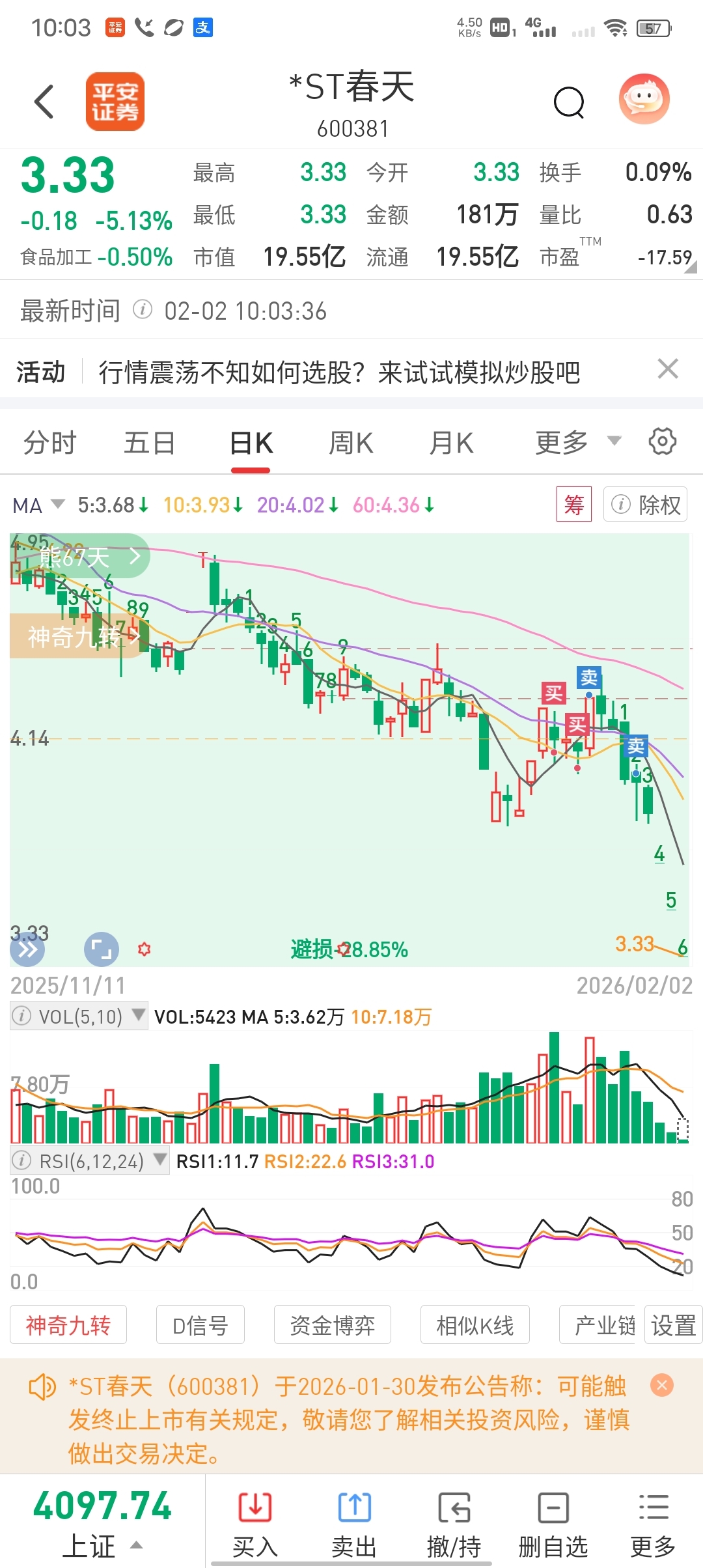 $*ST春天(SH600381)$ 没卖完还有点陪你退