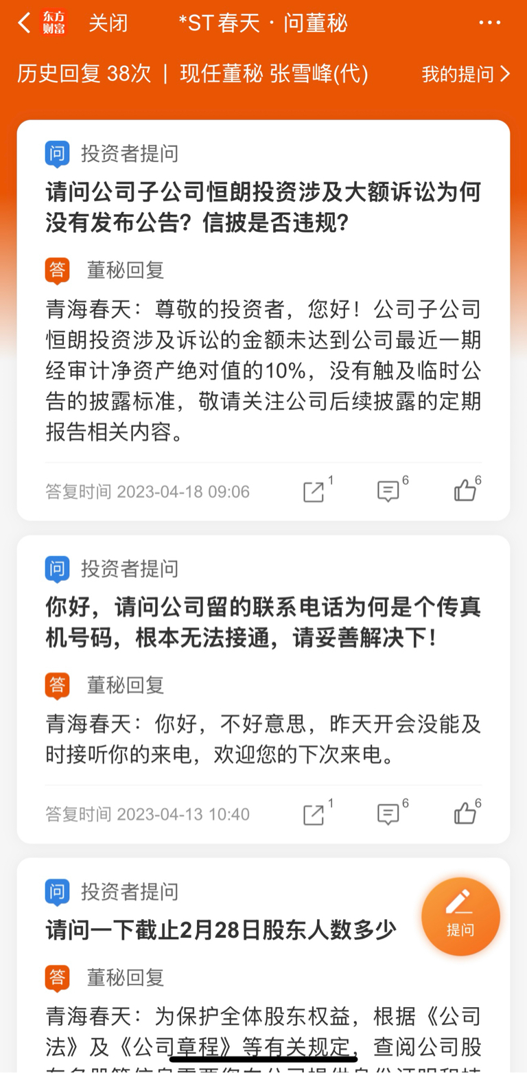 $*ST春天(SH600381)$ 雪峰哥现在混的都请不起董秘了吗?峰哥可是说过到2026年销售规模突破300亿的!!