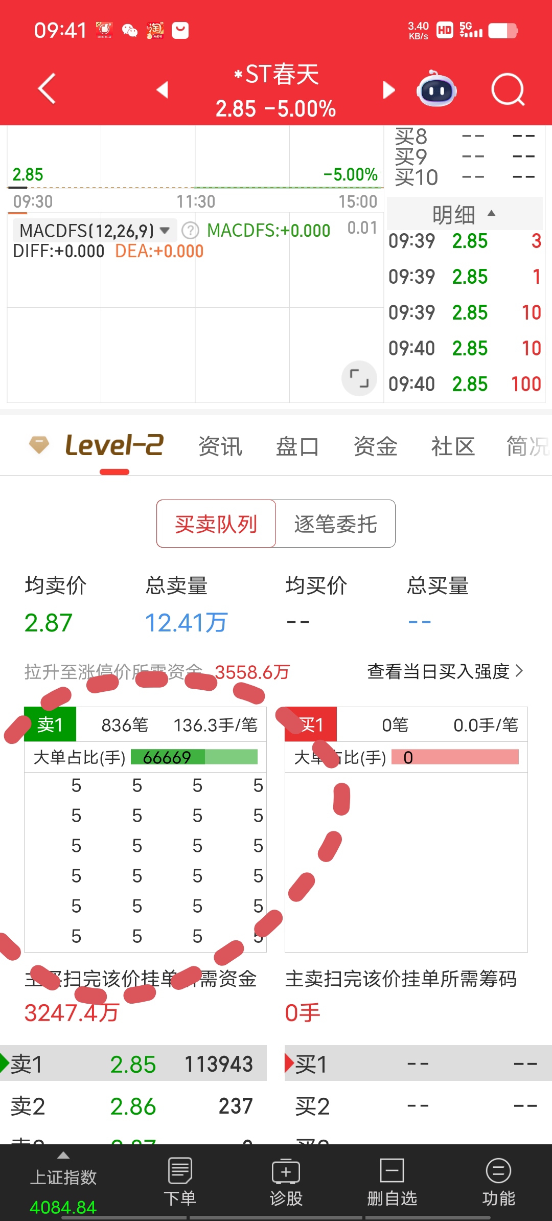 $*ST春天(SH600381)$ 全部是5手的,