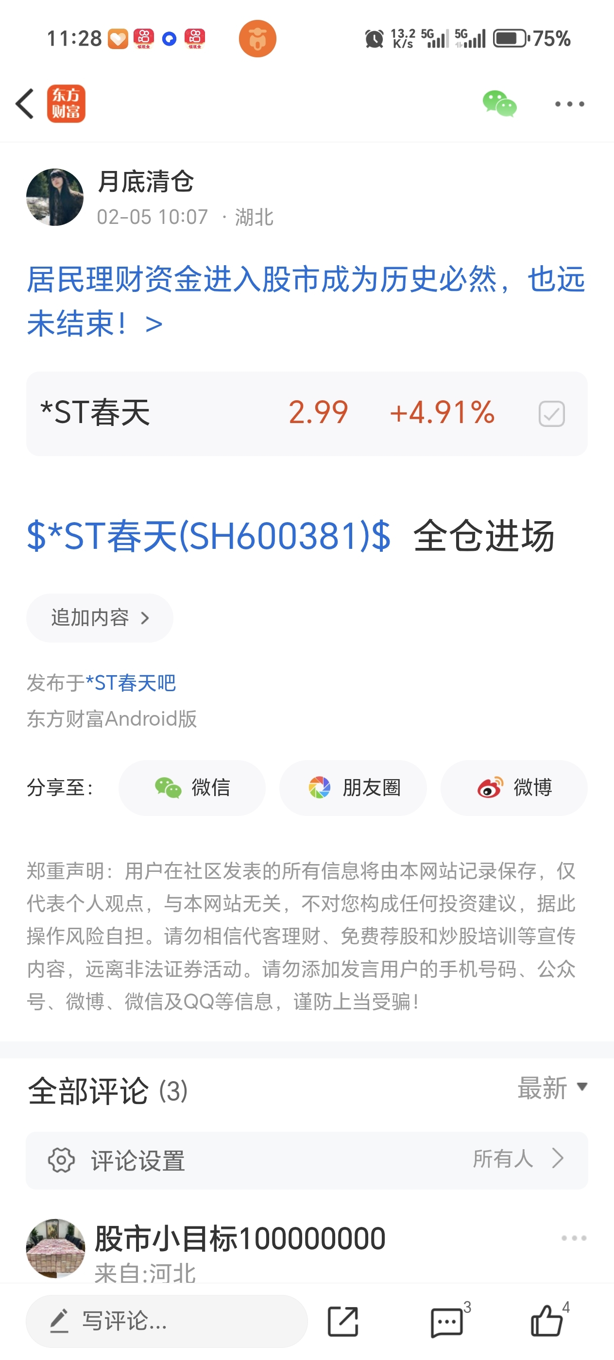 温馨提示: 1.根据《证券法》规定,禁止编造、传播虚假信息或者误导性信息,扰乱证券市场;2.用户在本社区发表的所有资料、言论等仅代表个人观点,与本网站立场无关,不对您构成任何投资建议。用户应基于自己的独立判断,自行决定证券投资并承担相应风险。《东方财富社区管理规定》