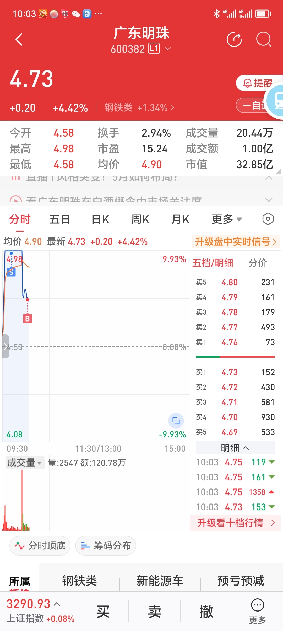 $广东明珠(SH600382)$ T了一下