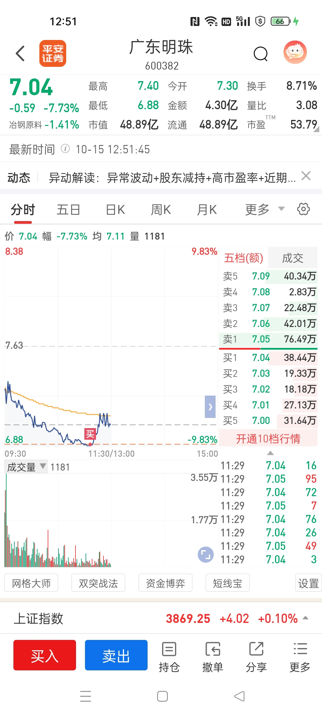 $广东明珠(SH600382)$ 主力我太渴望20厘米了。