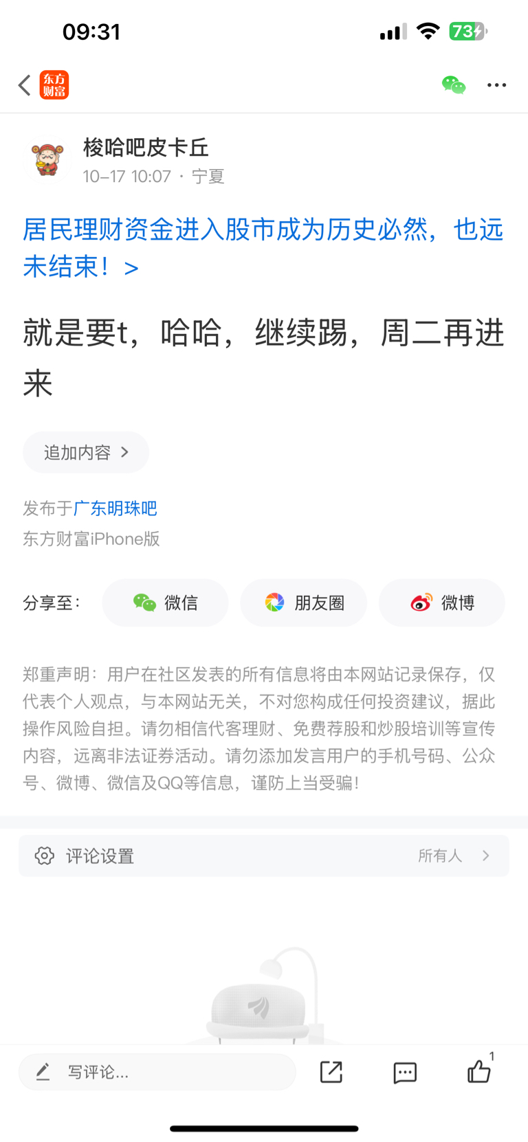 温馨提示: 1.根据《证券法》规定,禁止编造、传播虚假信息或者误导性信息,扰乱证券市场;2.用户在本社区发表的所有资料、言论等仅代表个人观点,与本网站立场无关,不对您构成任何投资建议。用户应基于自己的独立判断,自行决定证券投资并承担相应风险。《东方财富社区管理规定》