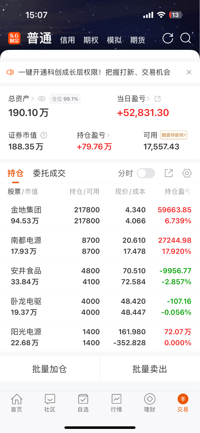 买了点安井食品。金地集团无交易。国庆快乐,玩得开心