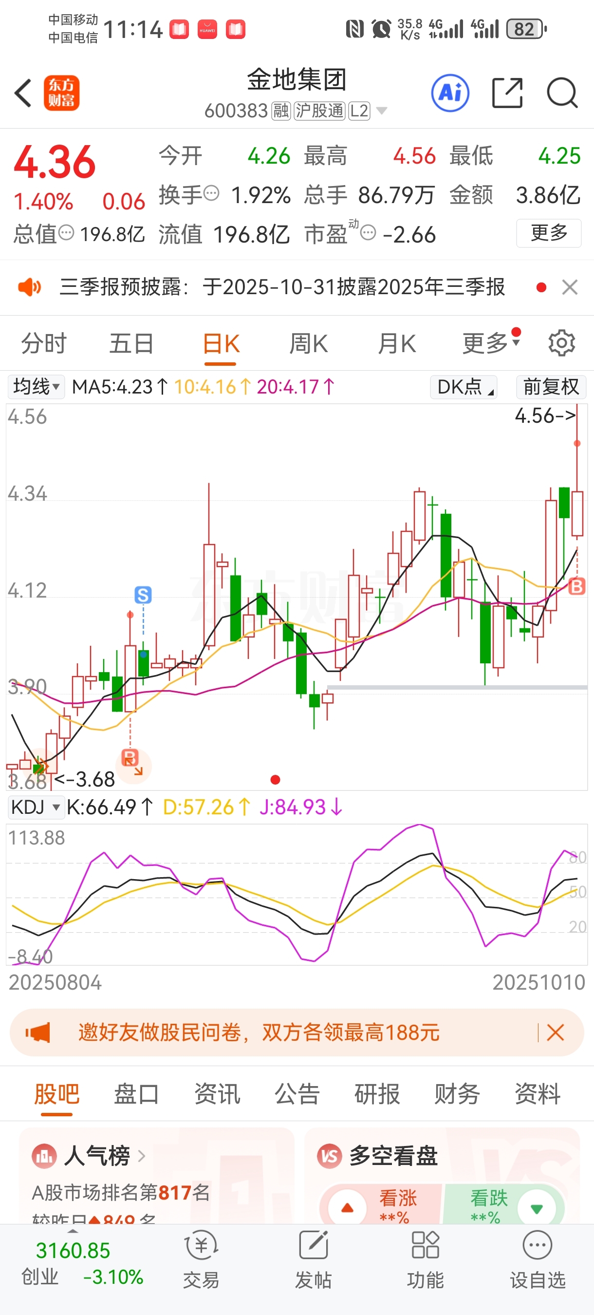 $金地集团(SH600383)$ 买一,挂山顶一次 。靠了 每次都是冲高回落,这什么股啊
