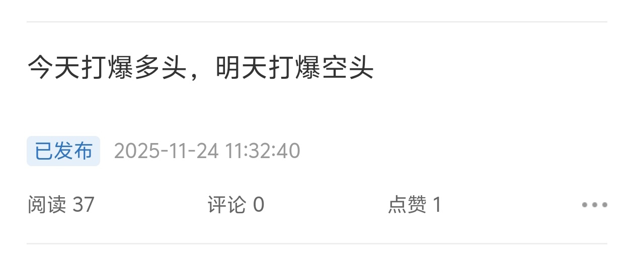 周一这帖只有37的浏览量,仅1人点赞,我在盘中所有的预判都是确定了一部分确定性才会发出来!