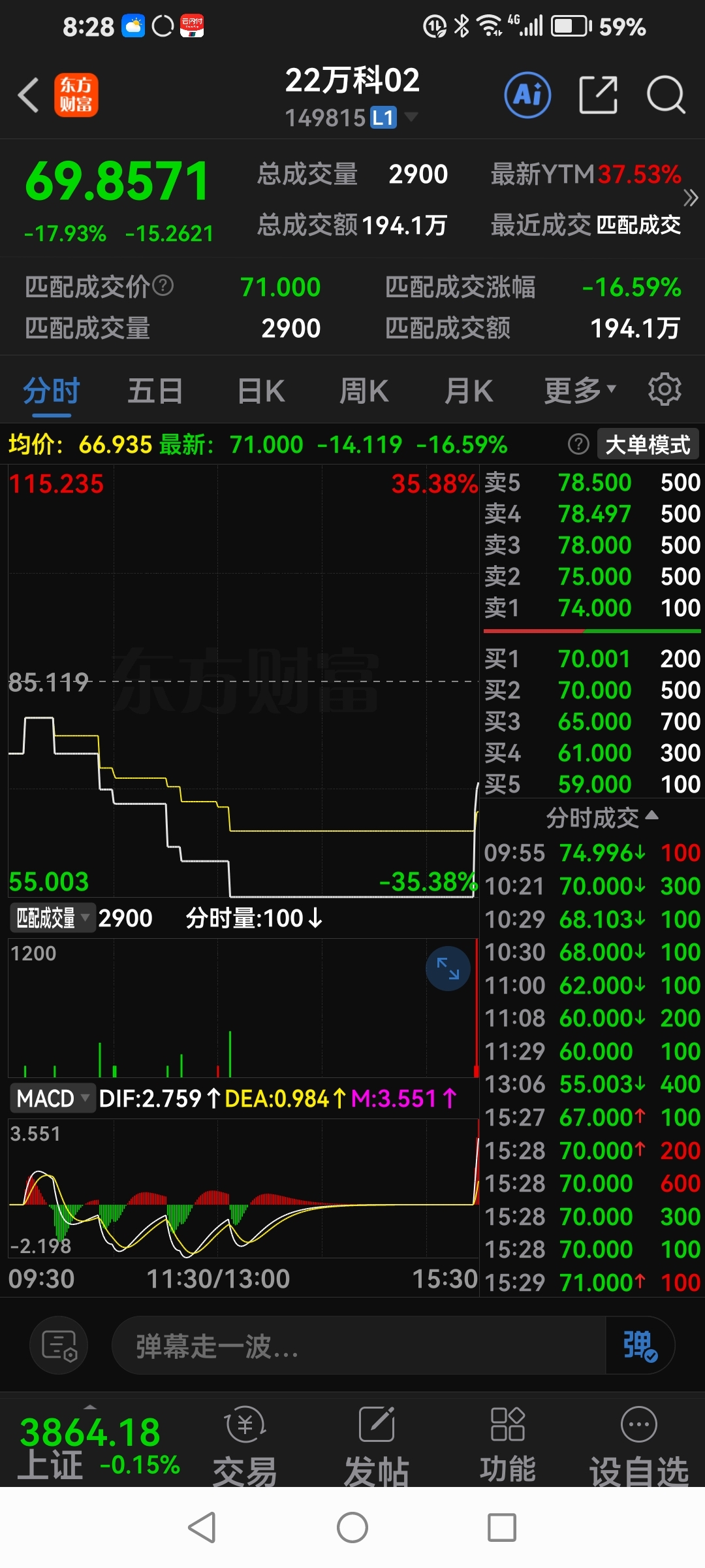 哈哈,小兔崽子,一点都不乖,今天又被万科带坏了,万科债券原先下降35%停牌,复盘