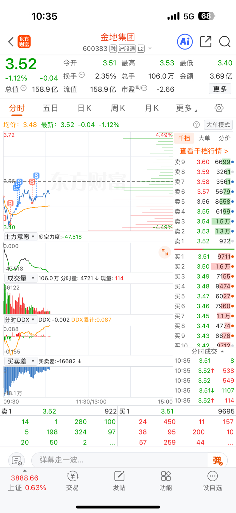 $金地集团(SH600383)$ 做T就是爽 3.42 重仓买进