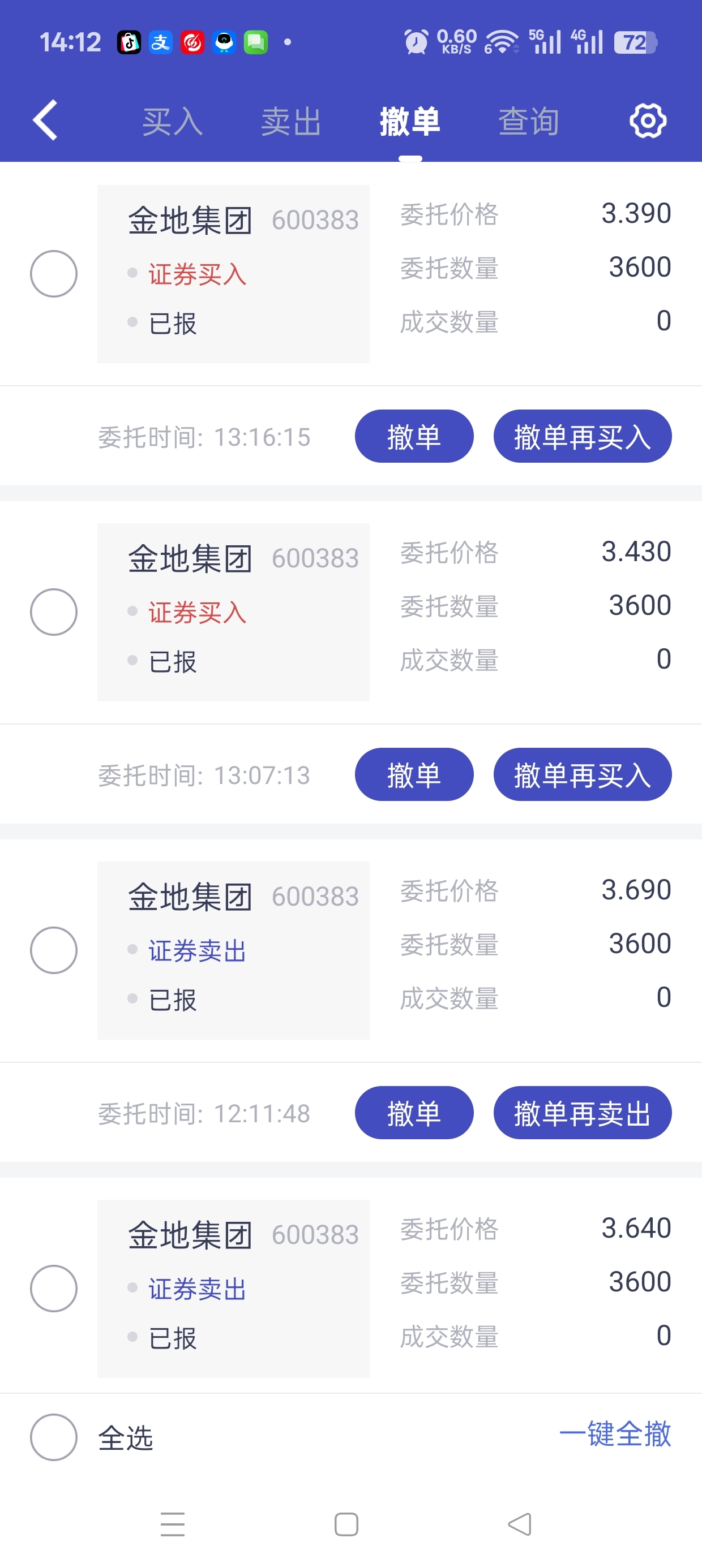 $金地集团(SH600383)$ 下午还想再做把T,可惜不给机会了!挂了好久一直不成交!