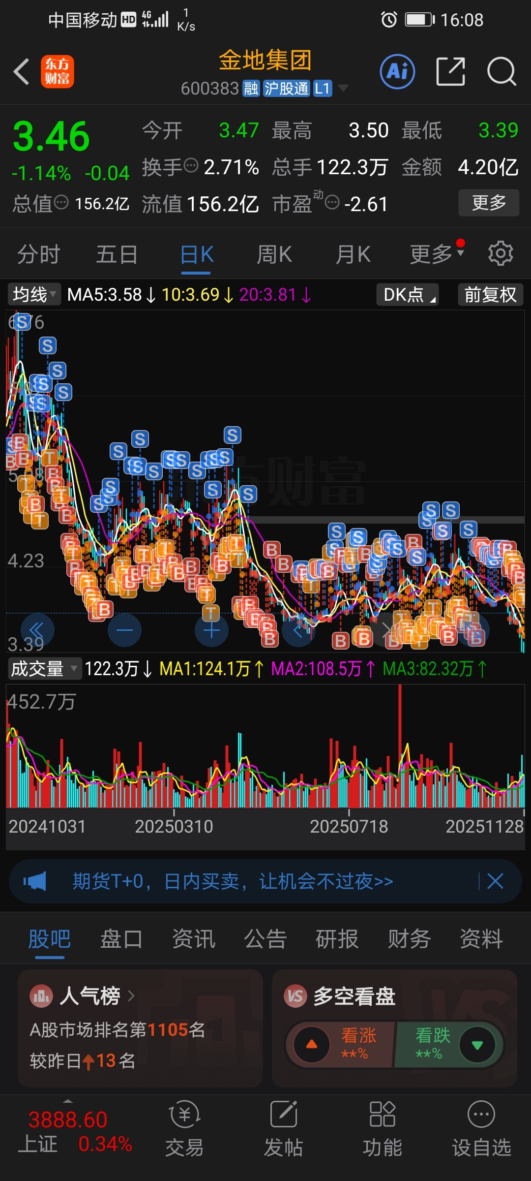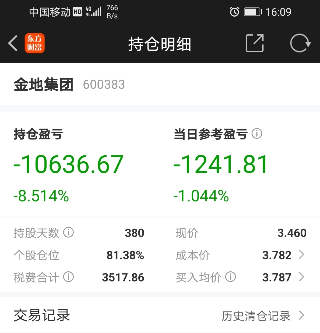 你NN个腿,坚守金地一年多,好消息是把成本从五块多一路做T到了三块八,坏消息是金