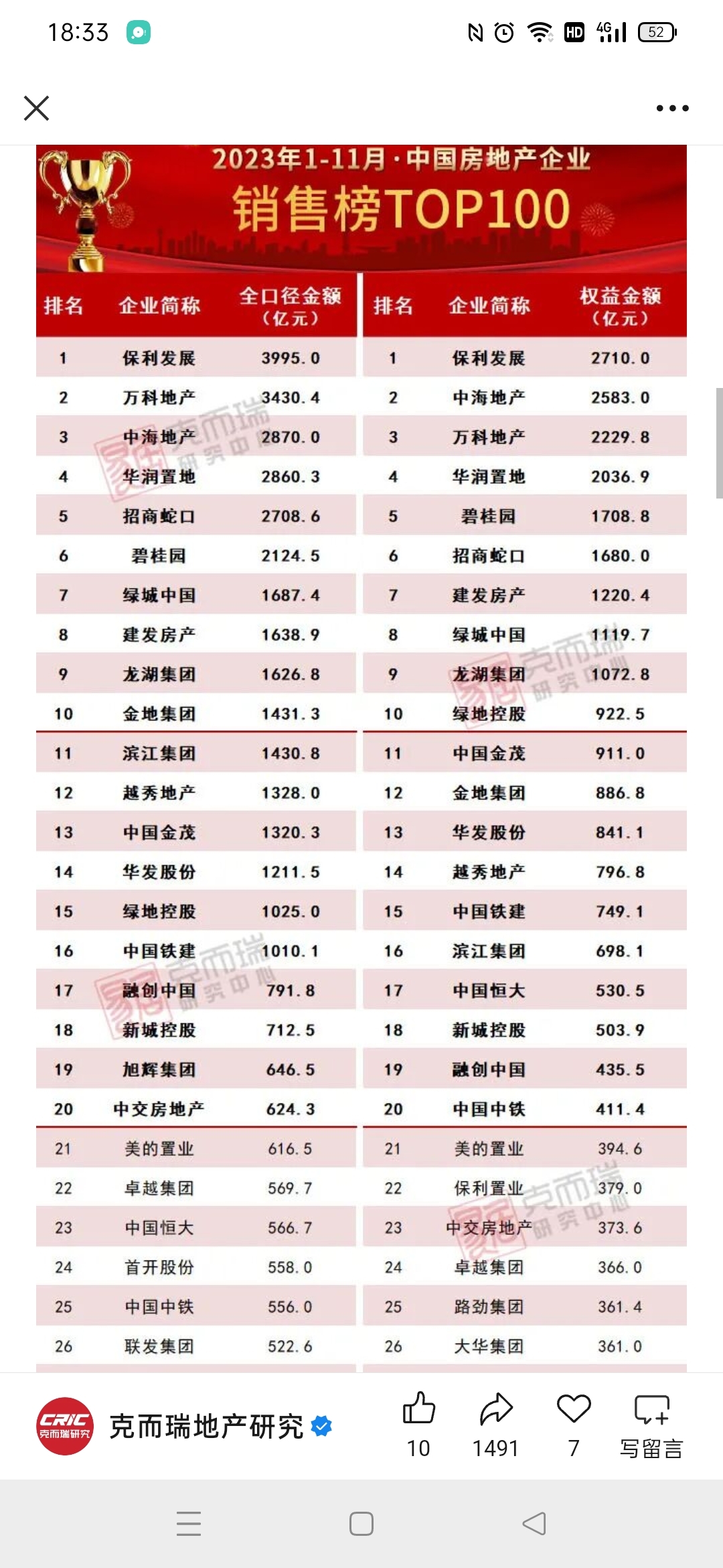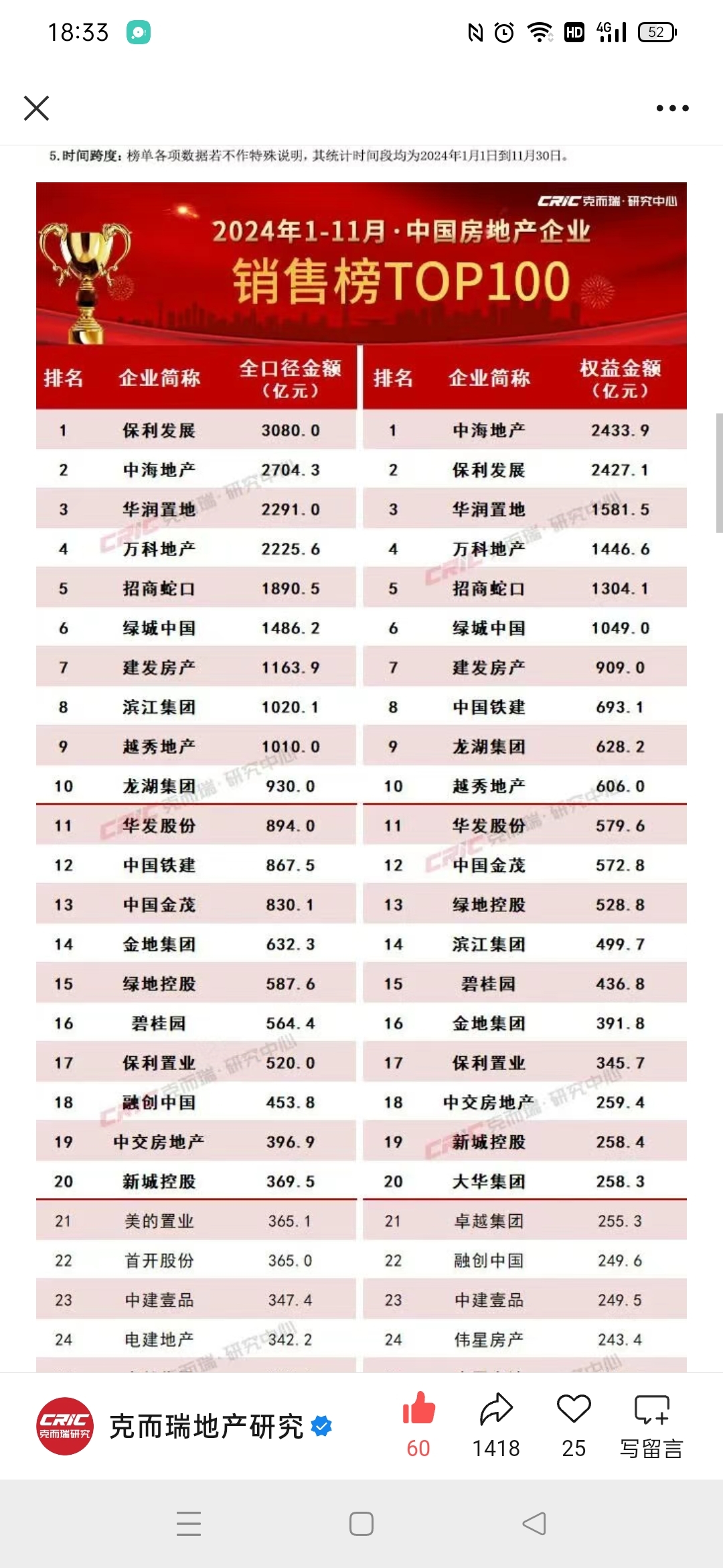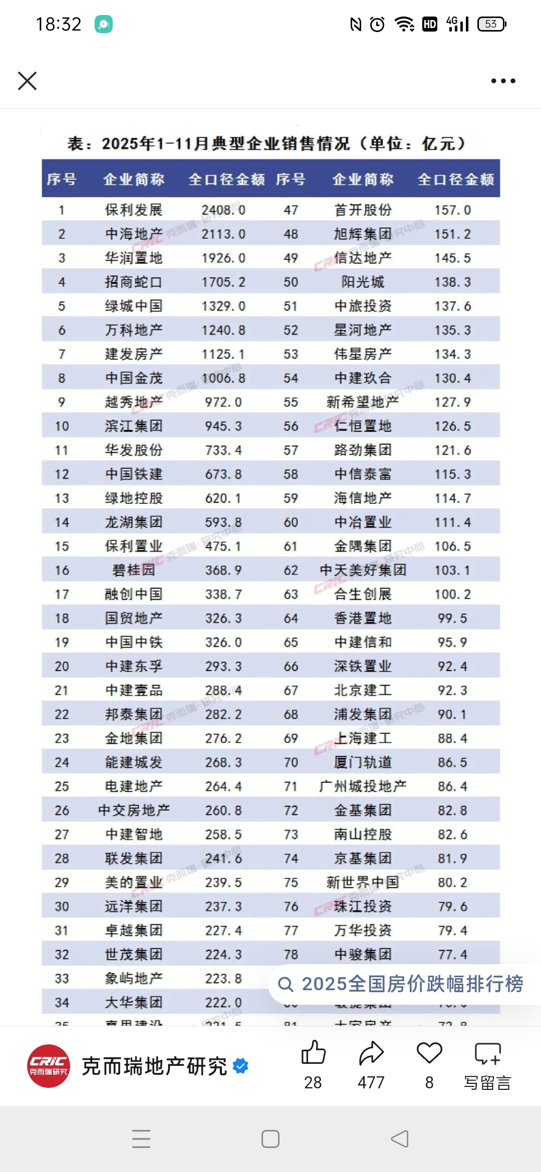 2025年1-11月金地集团销售额同比下降56.31%