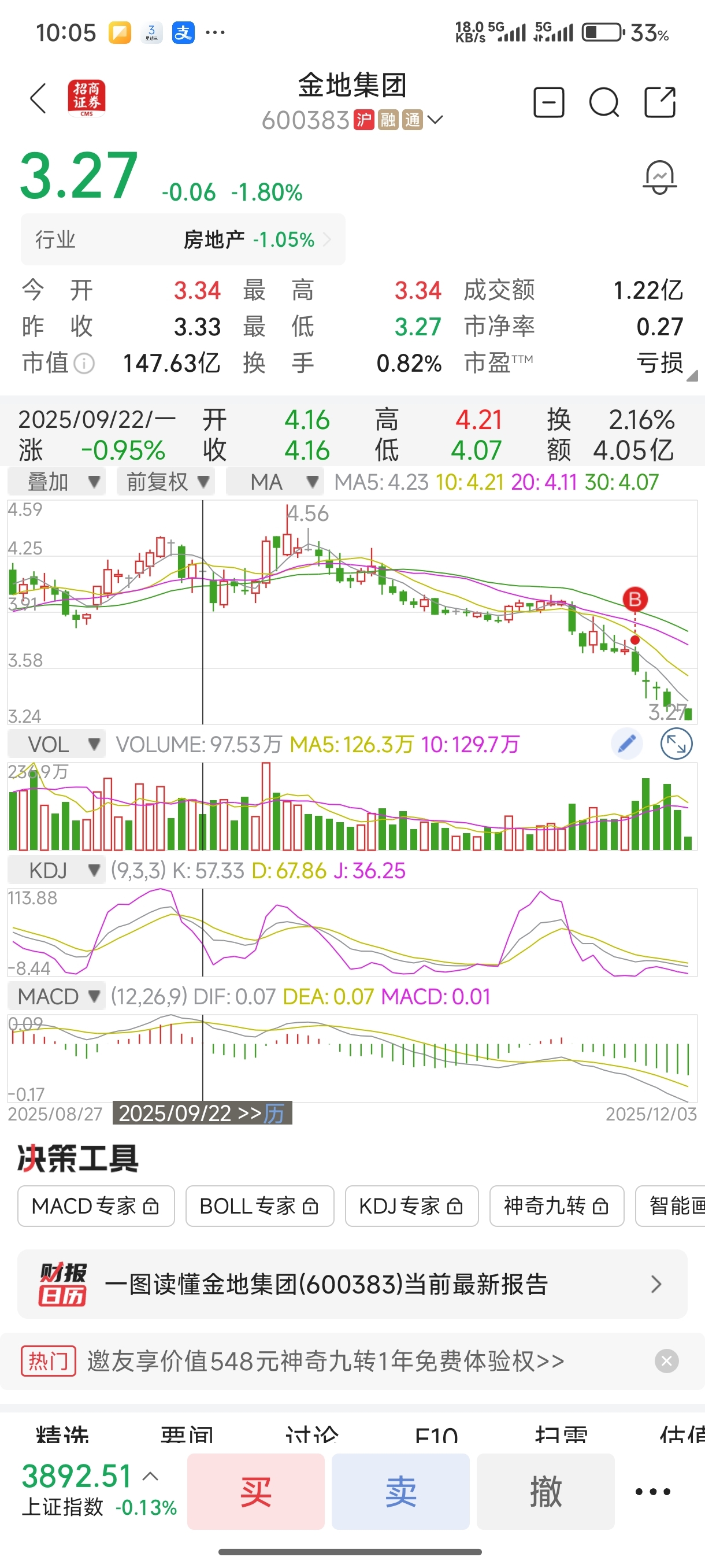 $金地集团(SH600383)$ 一进来就是五连鞭