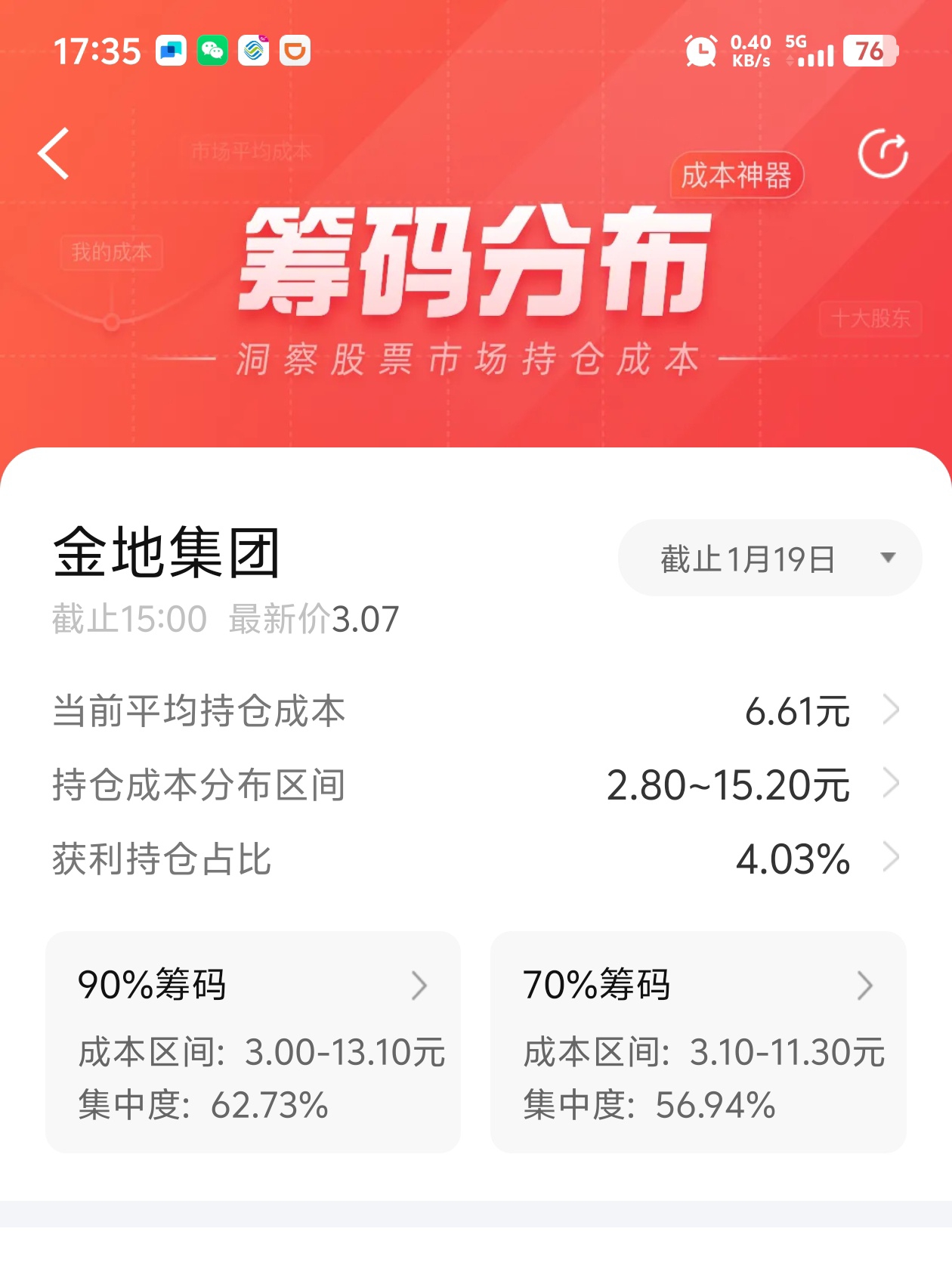 $金地集团(SH600383)$ 还有2%以上的筹码处于盈利状态,老六们还是不少呢,大家一起左脚踩右脚,大强敢来抄底,就把他踩进泥巴里