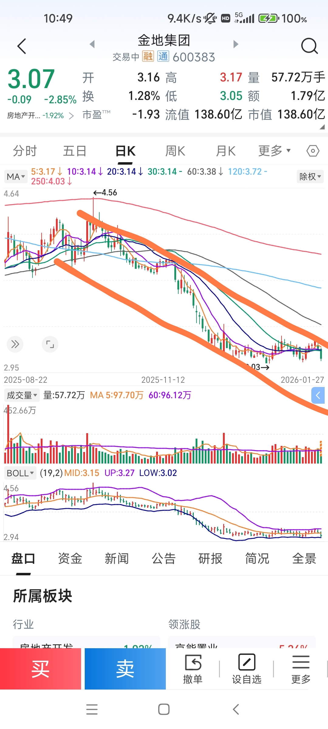 第一个关键压力位没有那么高,不到3.4元。就在3.27附近,这几次都是接近那里掉下来的。