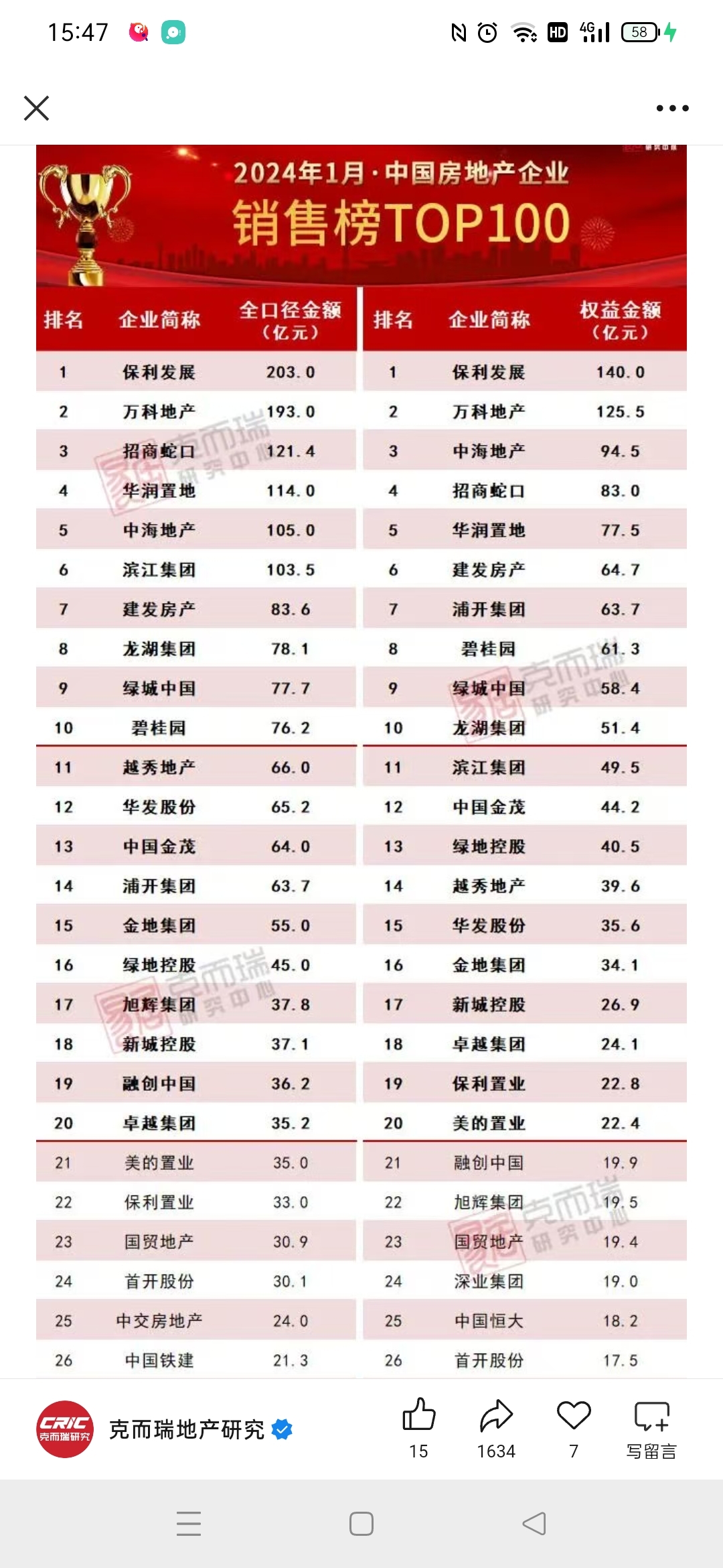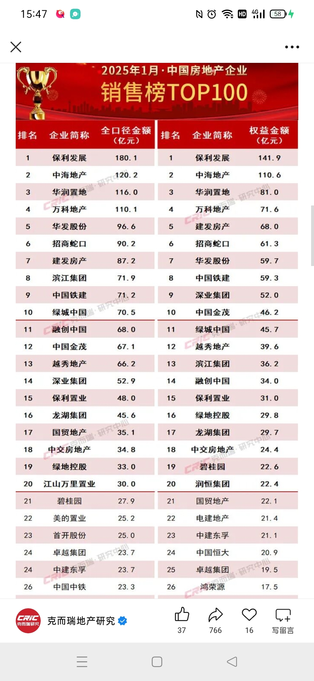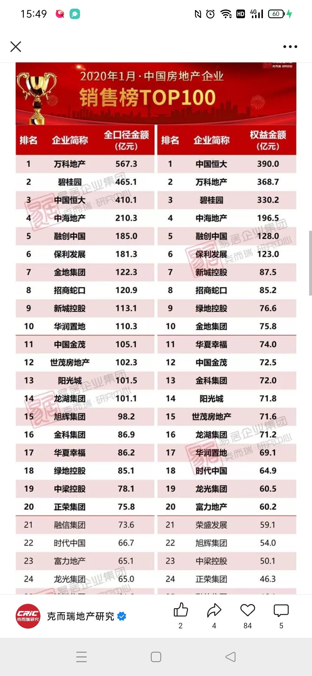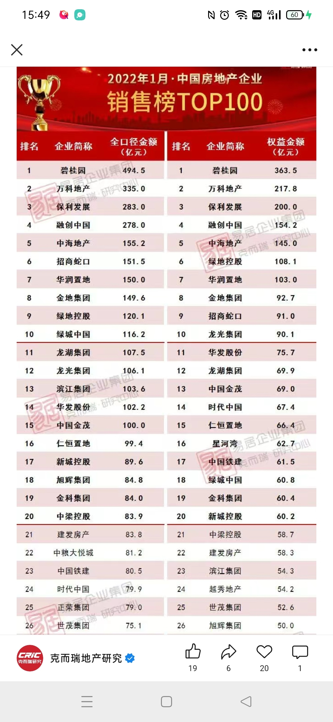 2026年1月金地集团销售额同比减少45.77%