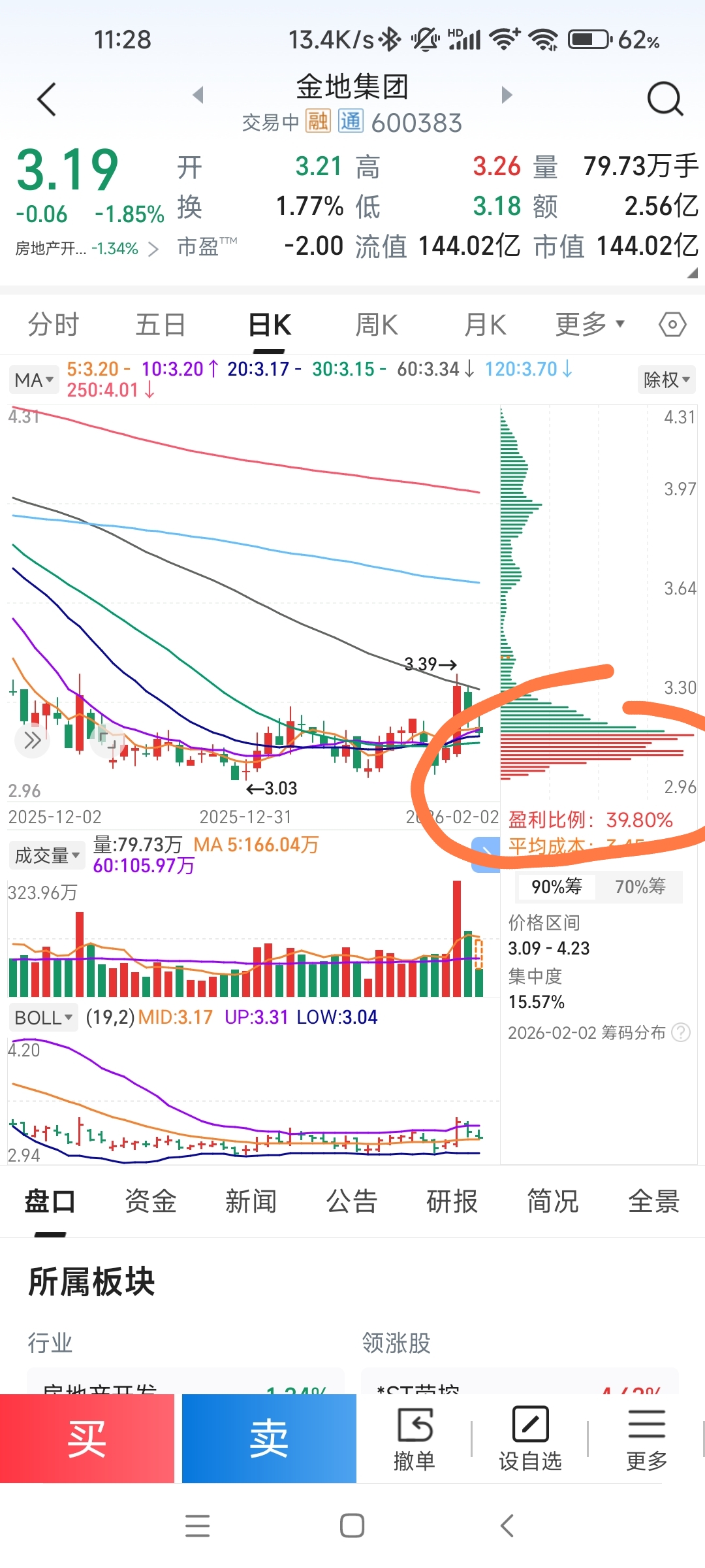 认为没有获利盘的,你自己看看有没有获利盘。你没在3.03买,不代表别人都没买。3