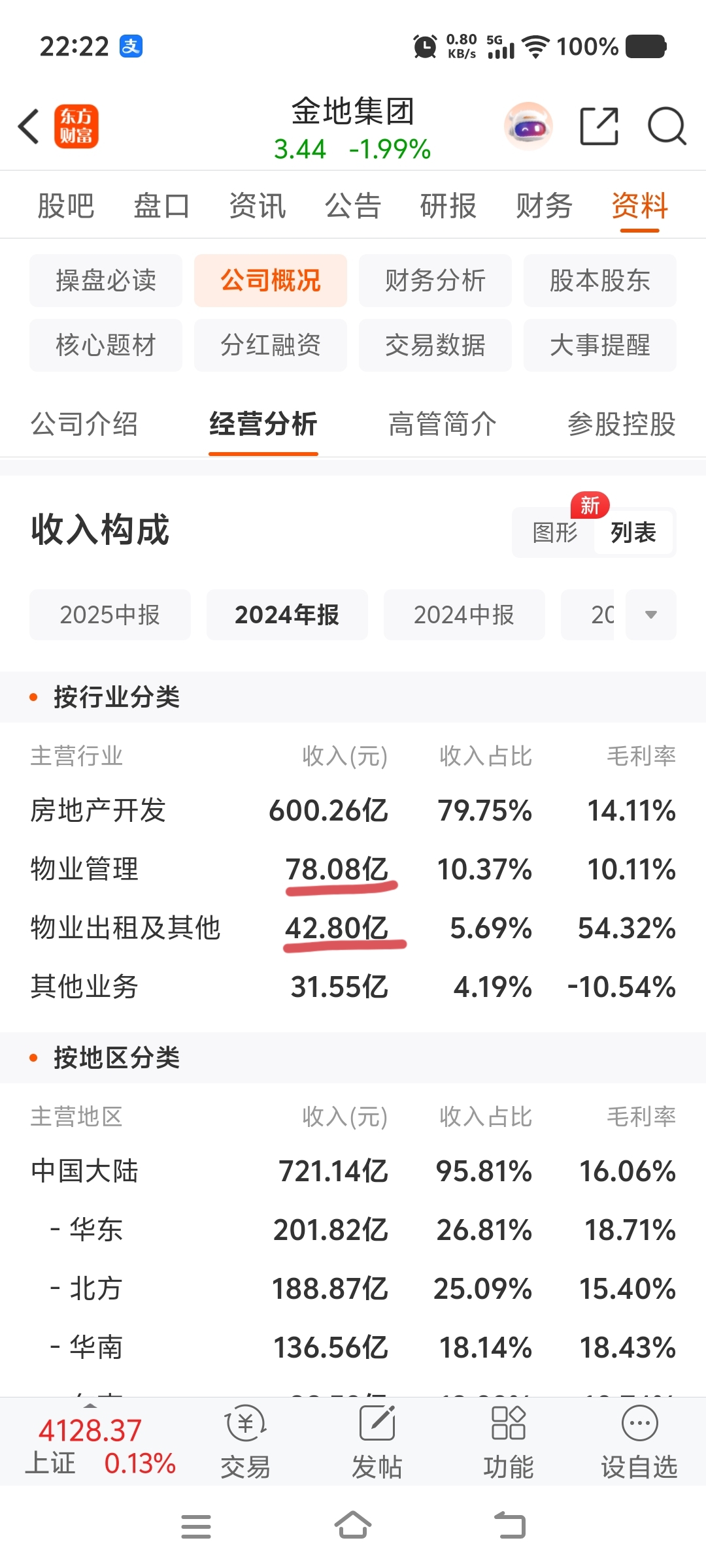 物业管理及出租一年都收120亿,金地不干地产都能过活了。