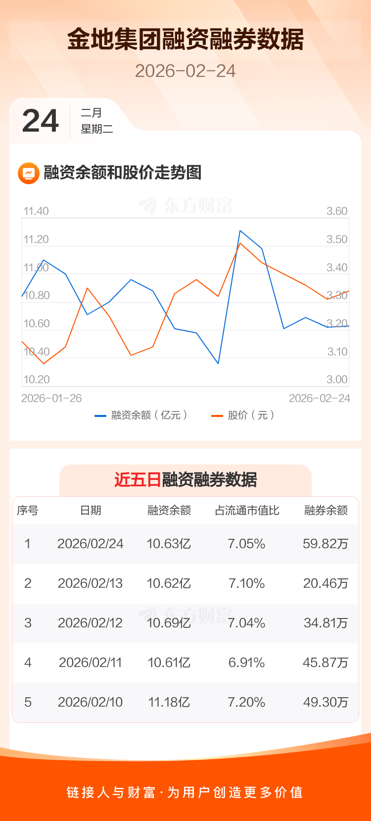 交易所最新数据显示,金地集团于2026年2月24日获融资买入3995.25万元,融资偿还3889.56万元,当日融资净买入105.69万元。目前,该股融资余额10.63亿,占流通市值比例为7.05%。