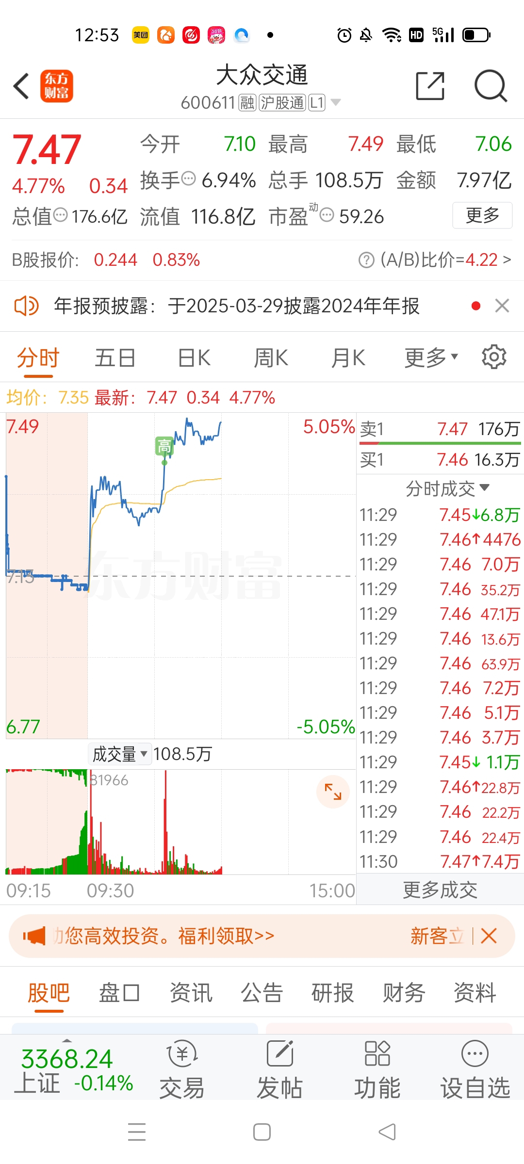 大众交通大涨,下午北巴跟涨点呗