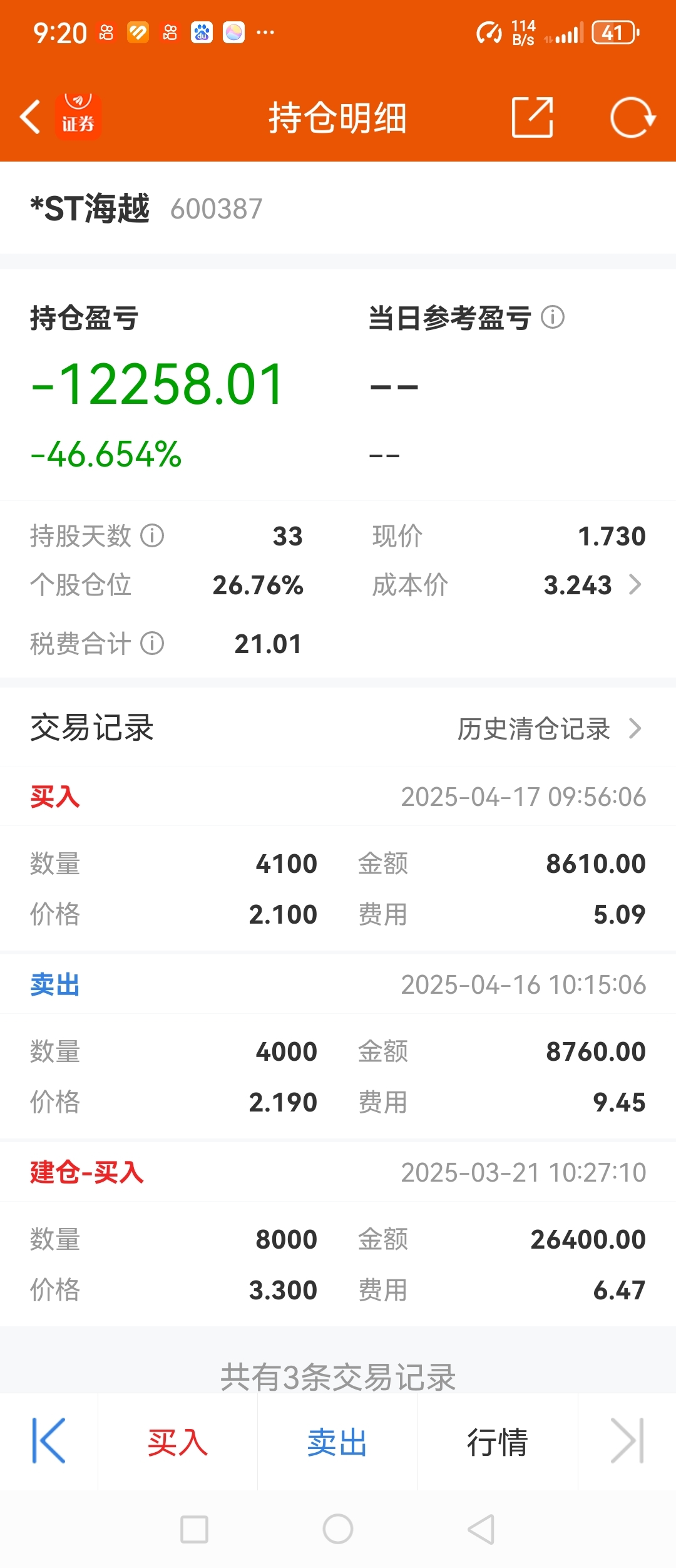 $*ST海越(SH600387)$