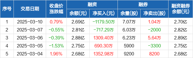 龙净环保:融资净偿还1179.5万元,融资余额2.69亿元(03-10)