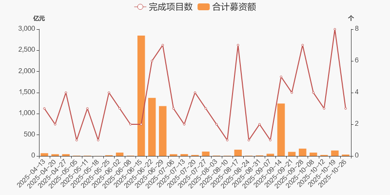统计期内,新增公告发行成功项目3例,环比减少5例,共计募资34亿,环比减少96.09亿。