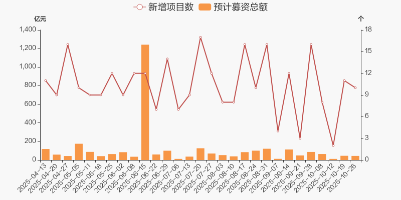 本周(2025/10/19-2025/10/26)共新增10例定增预案,预计募集资金共计43.83亿元,新增项目数量环比减少1例,预计募资总额环比降低1.47亿。