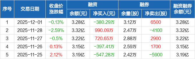 龙净环保:融资净偿还380.29万元,融资余额3.28亿元(12-01)