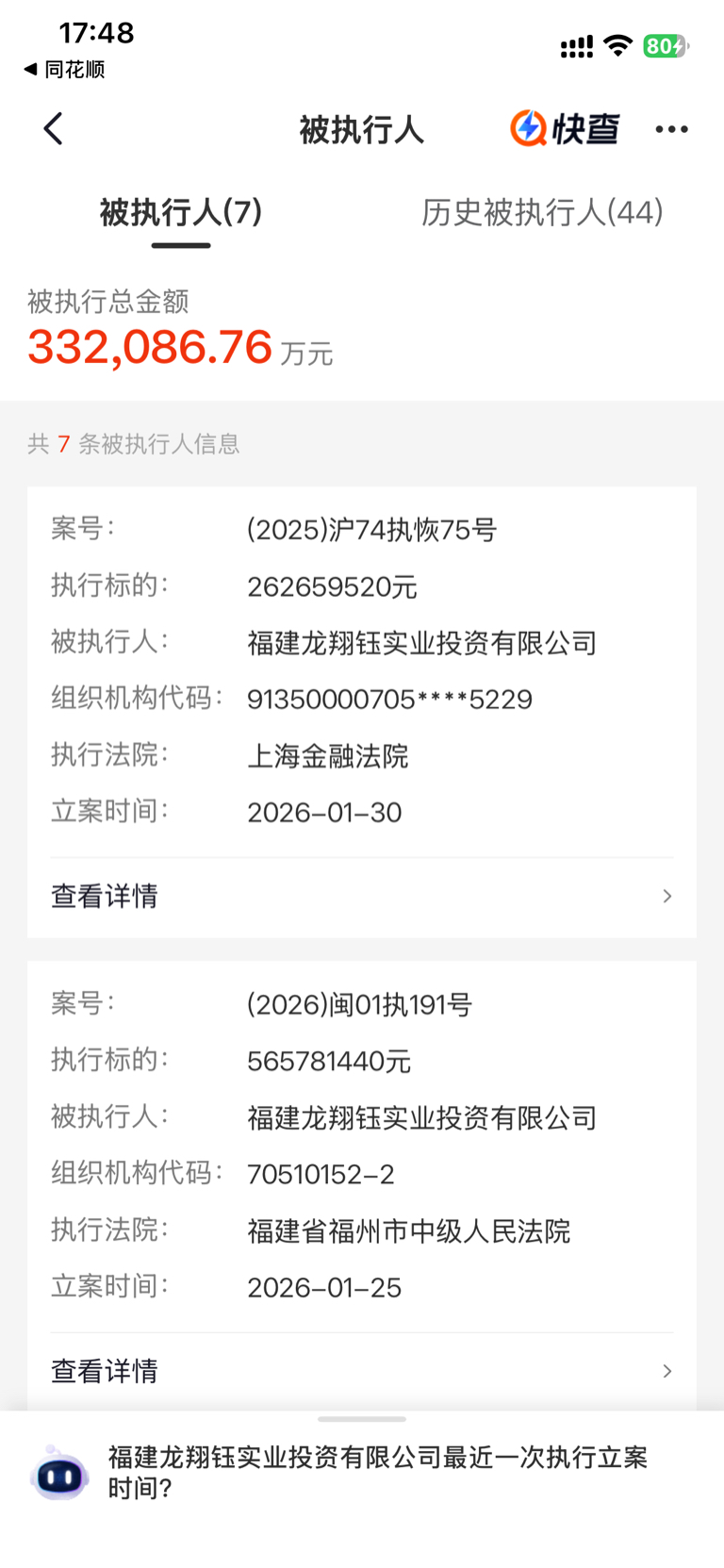 可能是这一笔执行成功了,我看企查查上前几天有,今天没有了
