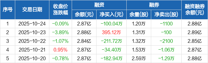 江山股份:融资净偿还100.04万元,融资余额2.87亿元(10-24)