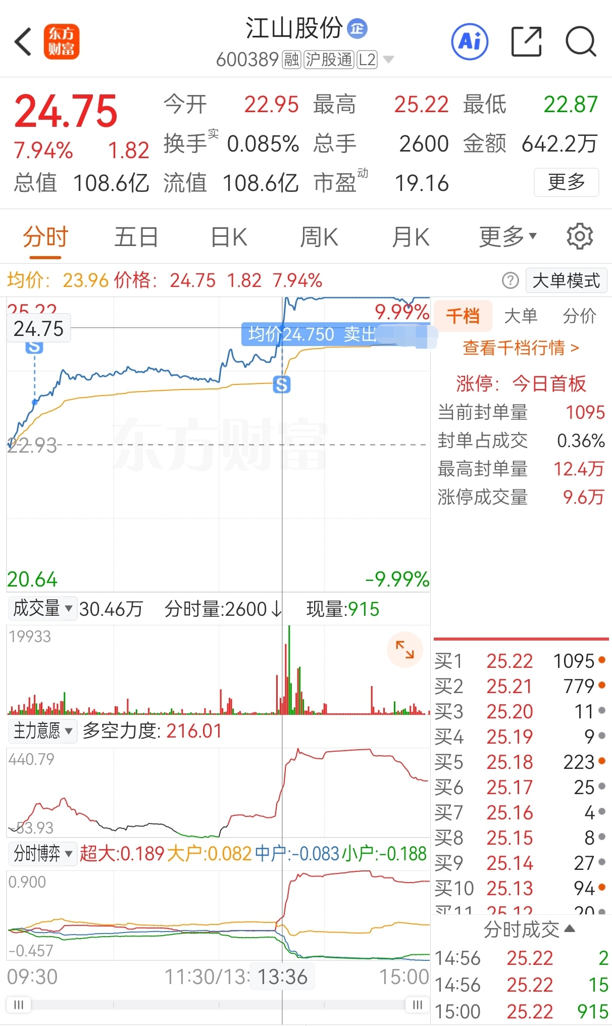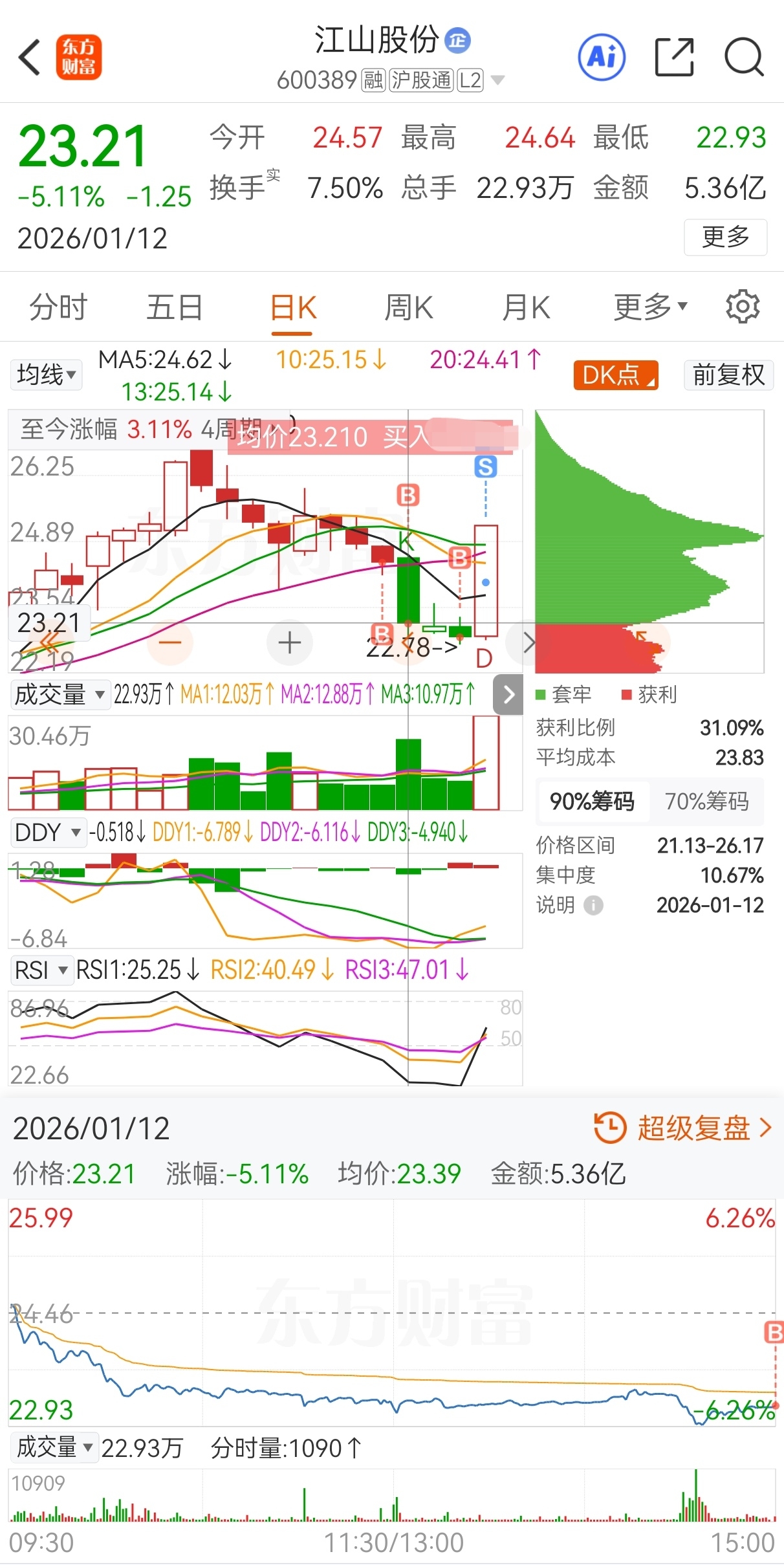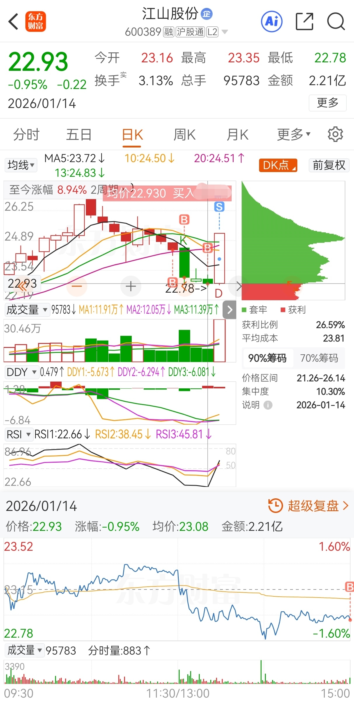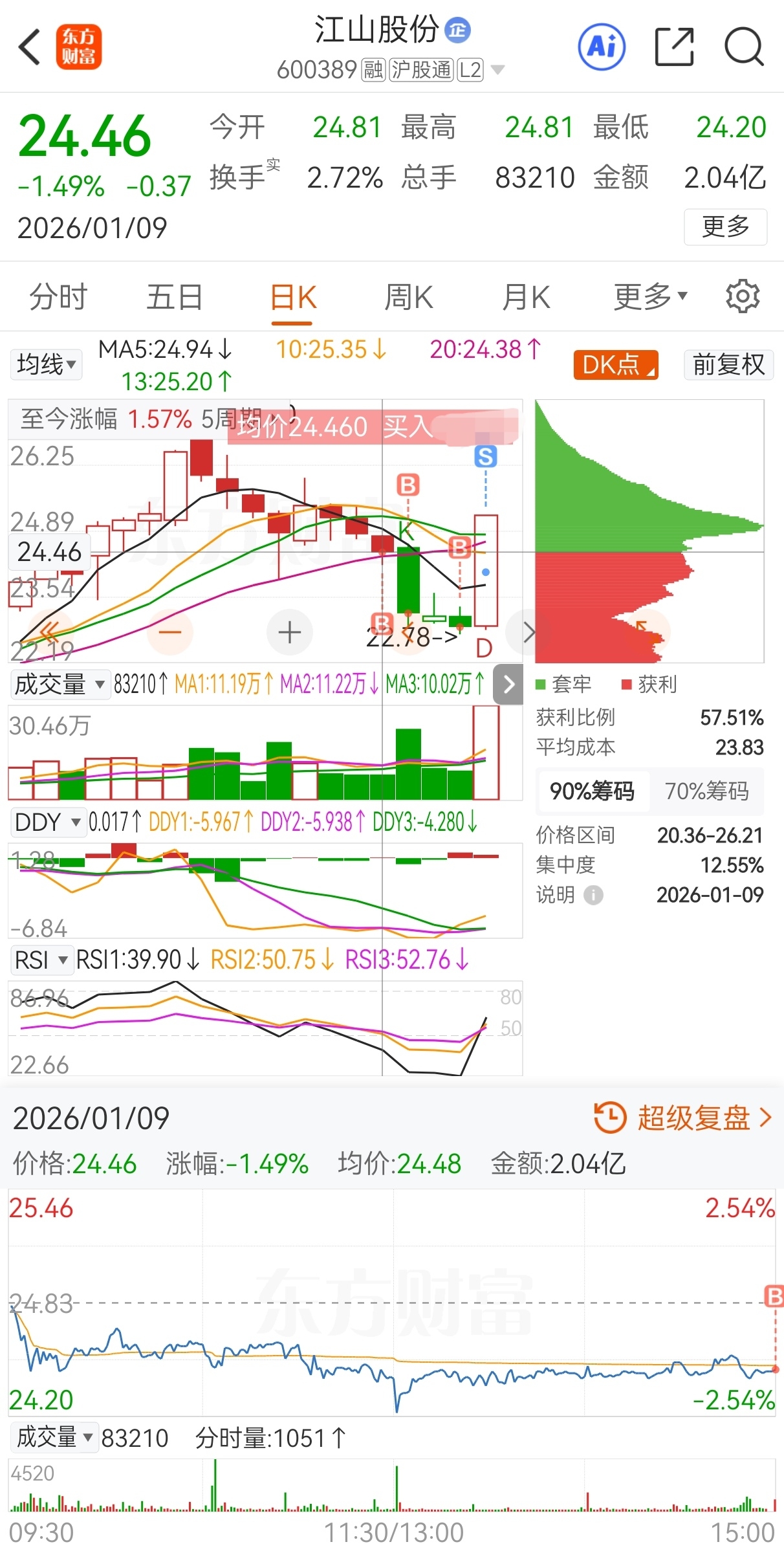 $江山股份(SH600389)$ 原计划今买明卖,实际24.46买,23.21加仓,22.93再加仓,23.59减仓,24.75卖,实盘短线套利江山股份,成功收米走人!