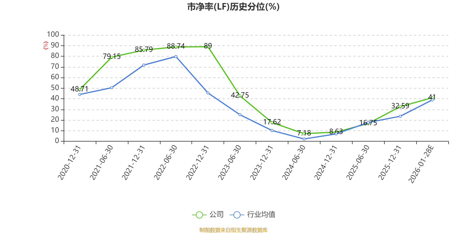 市盈率、市净率为负时,不显示当期分位数,会导致折线图中断。