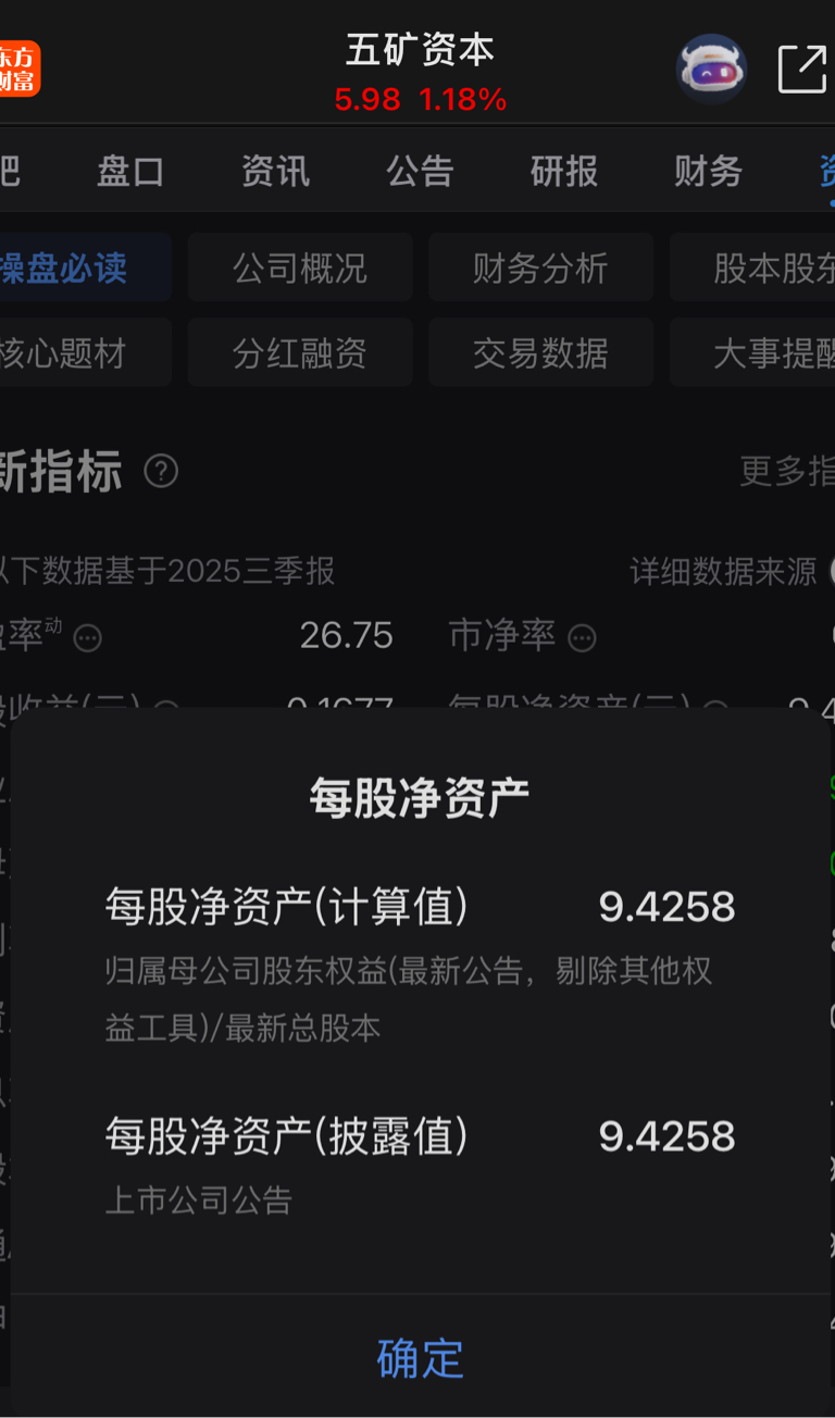 $五矿资本(SH600390)$ 股价常年下跌,每股净资产9.4258元,现在的股价接近净资产腰斩的位置,它们是哪里来的勇气说在做市值管理的,还有face说做了年底考核目标的