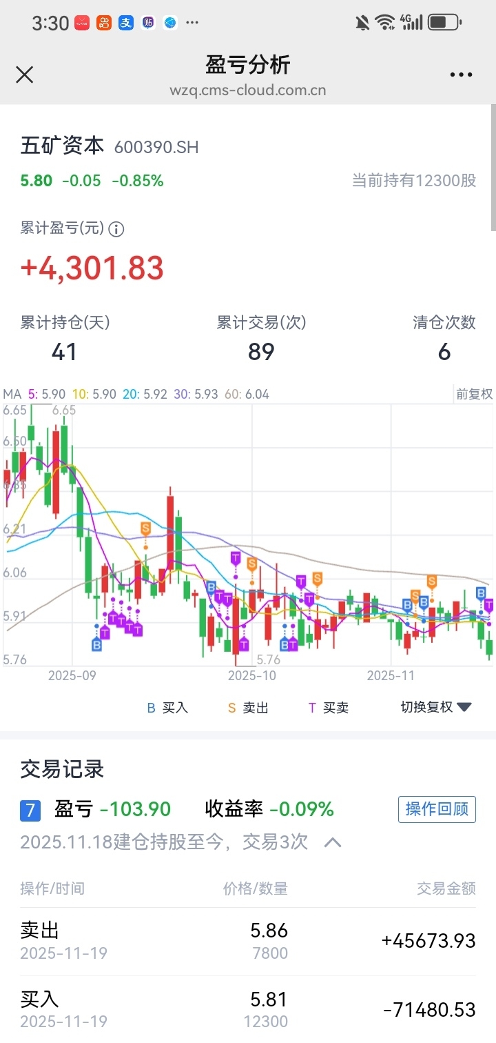$五矿资本(SH600390)$ 今天做了把t,给自己点个赞