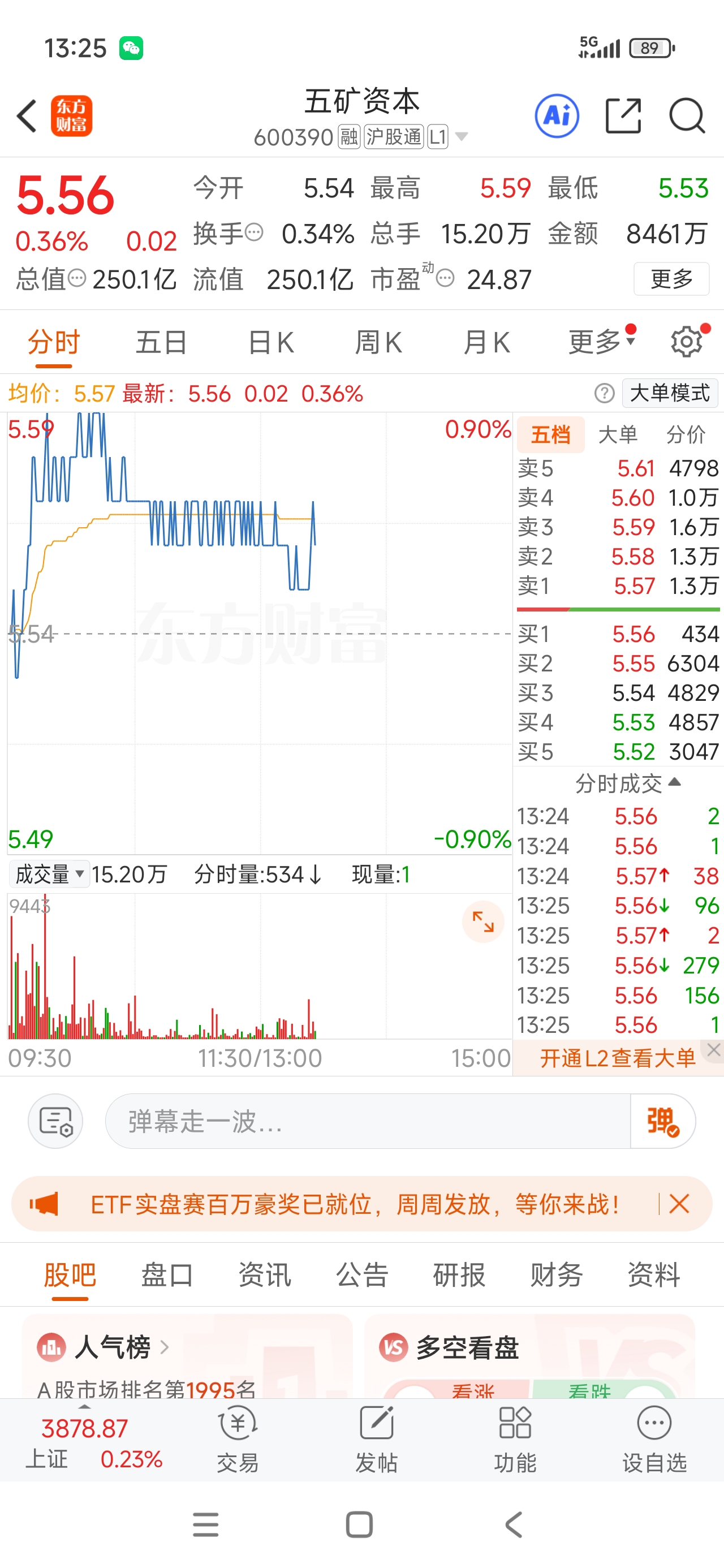 $五矿资本(SH600390)$ 牛逼5.7就开始按死了