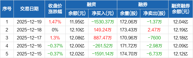 五矿资本:融资净偿还1530.37万元,融资余额11.95亿元(12-19)