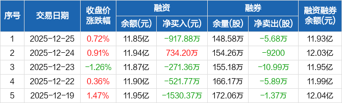 五矿资本:融资净偿还917.88万元,融资余额11.85亿元(12-25)
