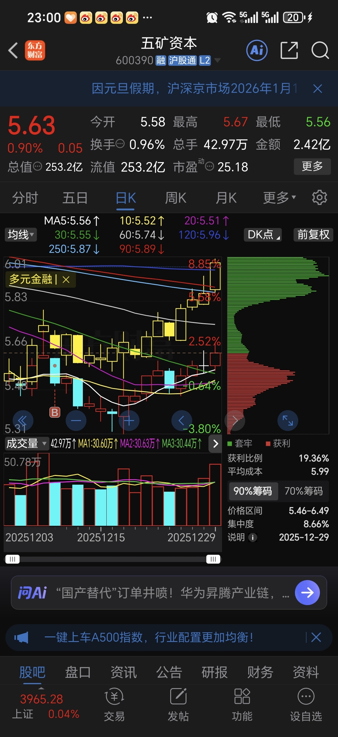 $五矿资本(SH600390)$ 之前11个月落后板块20多个点,这半个月又落后板块6个多点,厉害了。