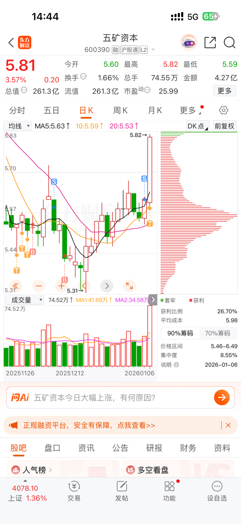 $五矿资本(SH600390)$ 拿了一年多,昨天卖出了,高价买回来了,成本又高了,还有谁?这次竟然能连续涨没想到啊