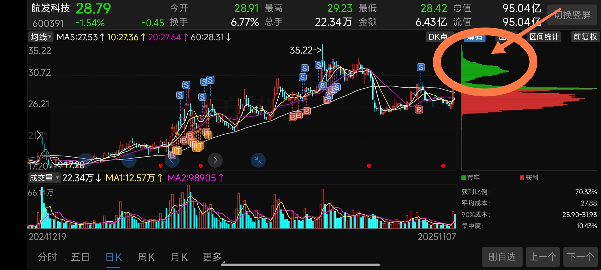 $航发科技(SH600391)$ 给你们一个简单粗暴的指标,啥时候这个峰的筹码解套了,再考虑主升
