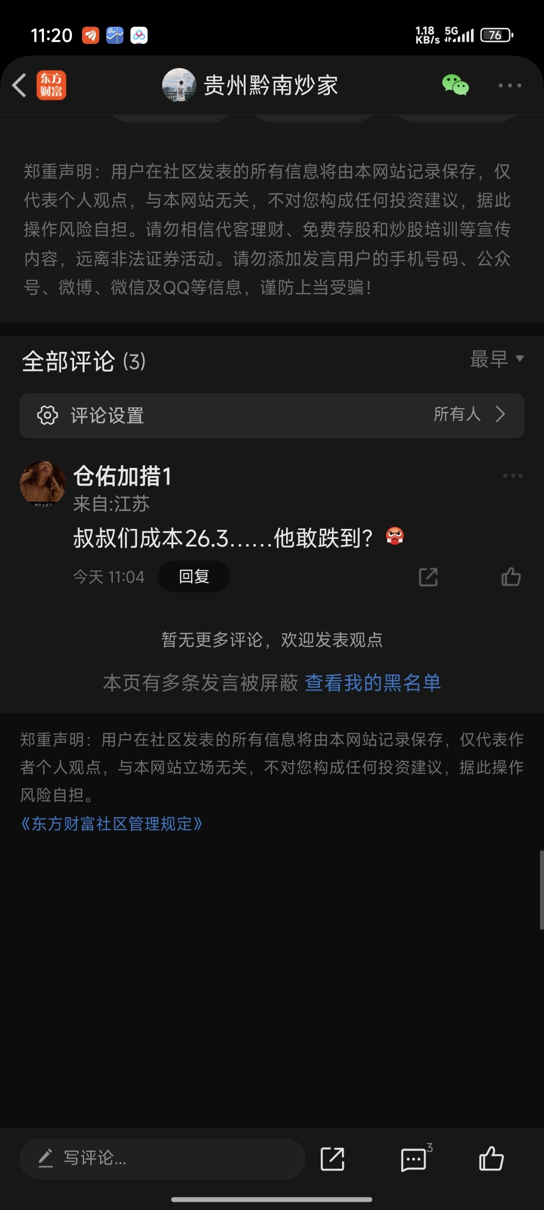 温馨提示: 1.根据《证券法》规定,禁止编造、传播虚假信息或者误导性信息,扰乱证券市场;2.用户在本社区发表的所有资料、言论等仅代表个人观点,与本网站立场无关,不对您构成任何投资建议。用户应基于自己的独立判断,自行决定证券投资并承担相应风险。《东方财富社区管理规定》