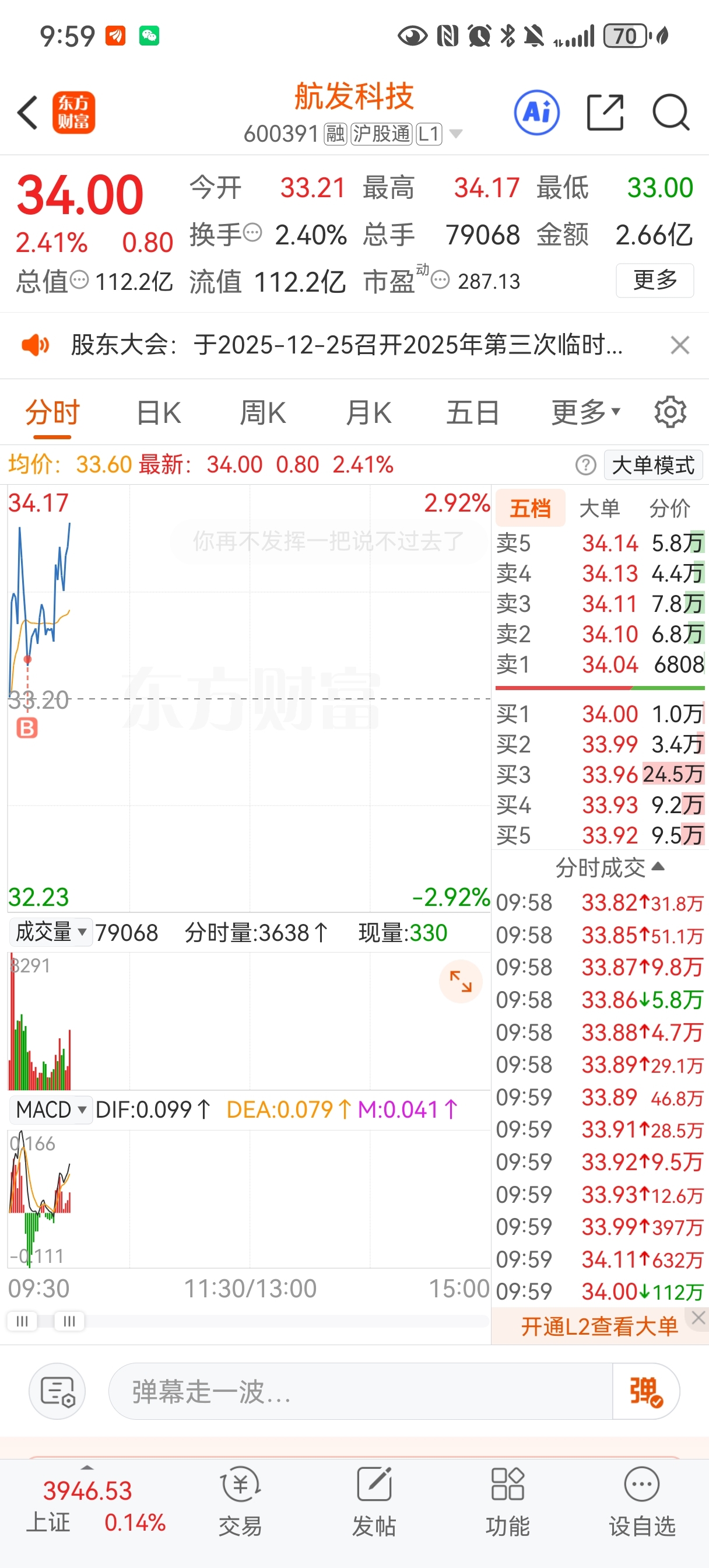 $航发科技(SH600391)$ 早盘挂32.9挂低一毛钱没成交,买到次低也行吧