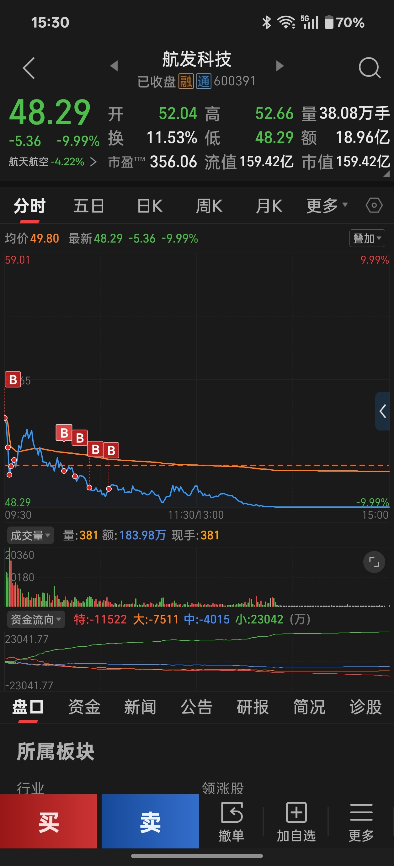 $航发科技(SH600391)$ 吸着吸着跌停了,希望明天能反包吧