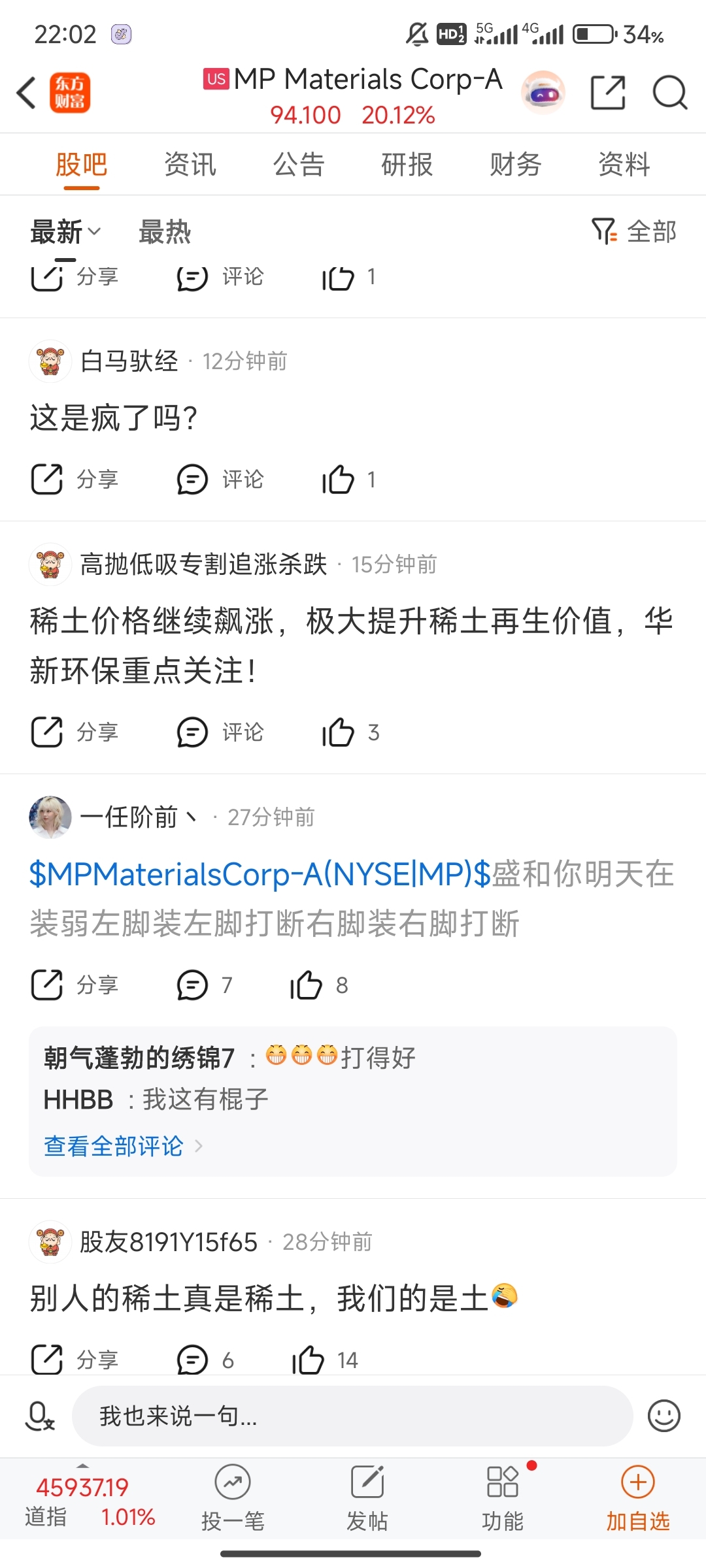 温馨提示: 1.根据《证券法》规定,禁止编造、传播虚假信息或者误导性信息,扰乱证券市场;2.用户在本社区发表的所有资料、言论等仅代表个人观点,与本网站立场无关,不对您构成任何投资建议。用户应基于自己的独立判断,自行决定证券投资并承担相应风险。《东方财富社区管理规定》